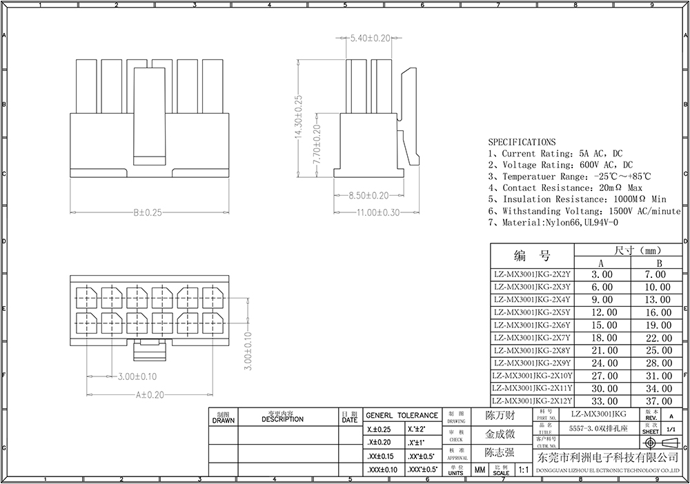 MX3.0mm间距端子胶壳