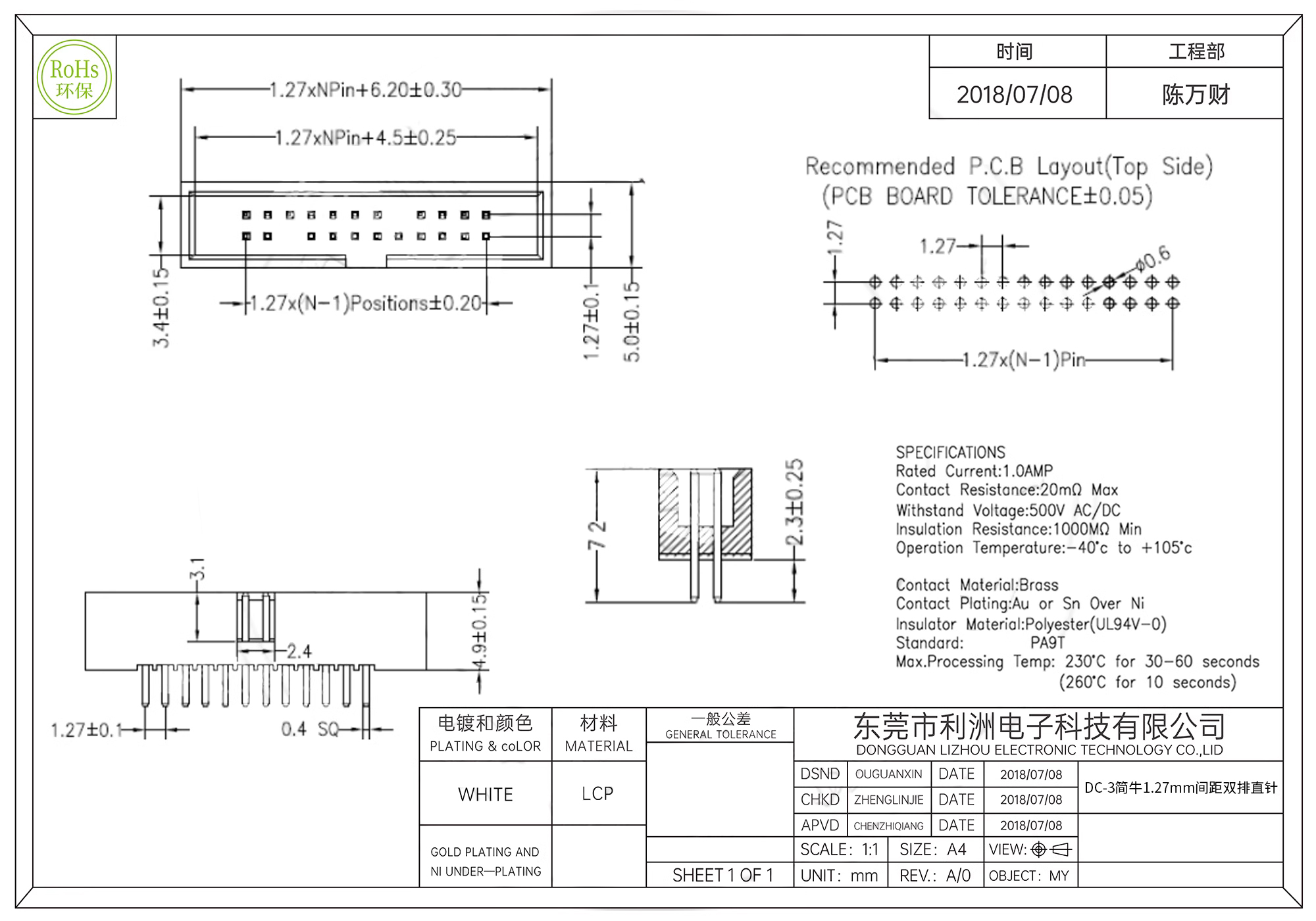 Rated current: 1.0AMP