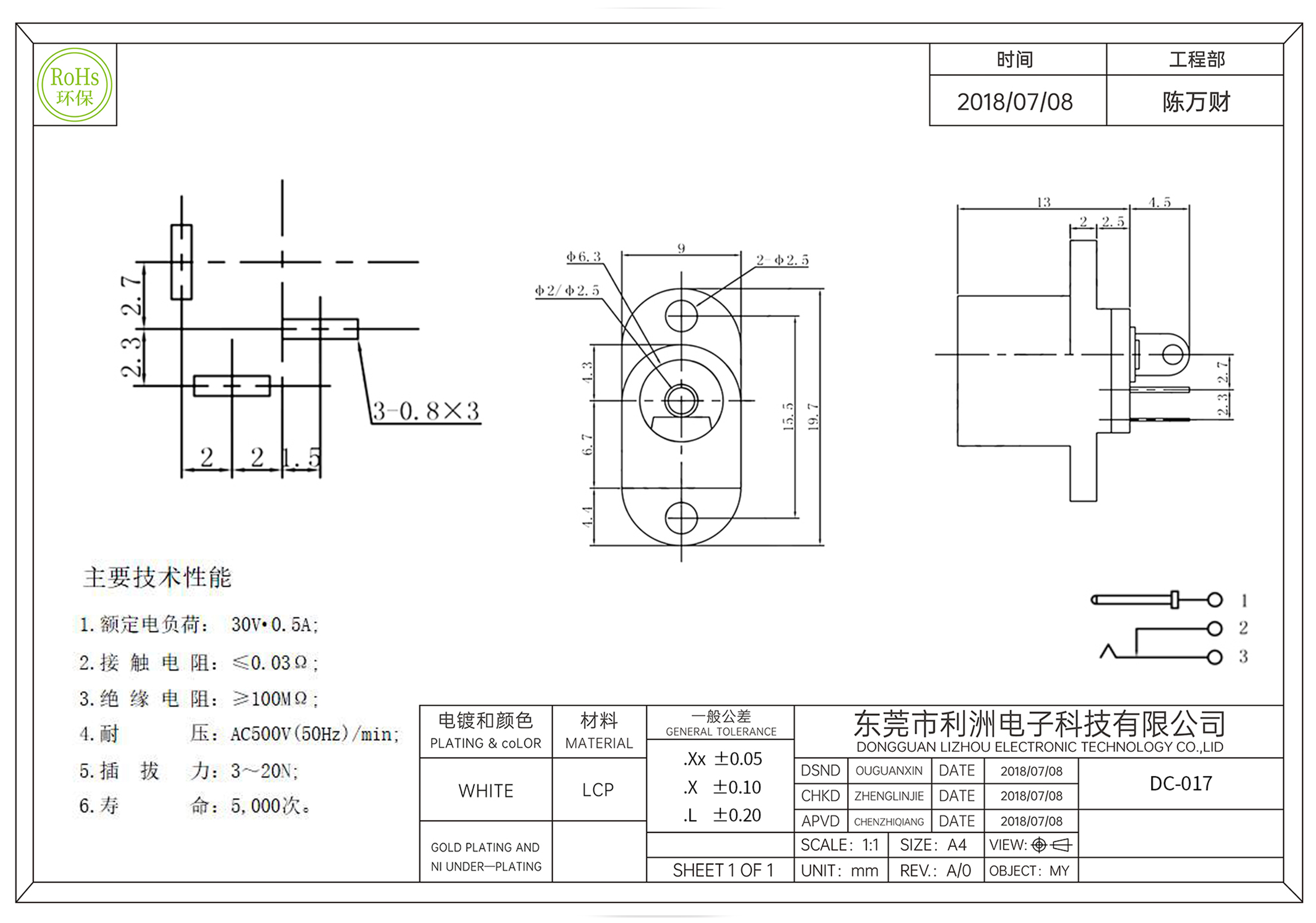 Contact resistance : ≤0.03mΩ