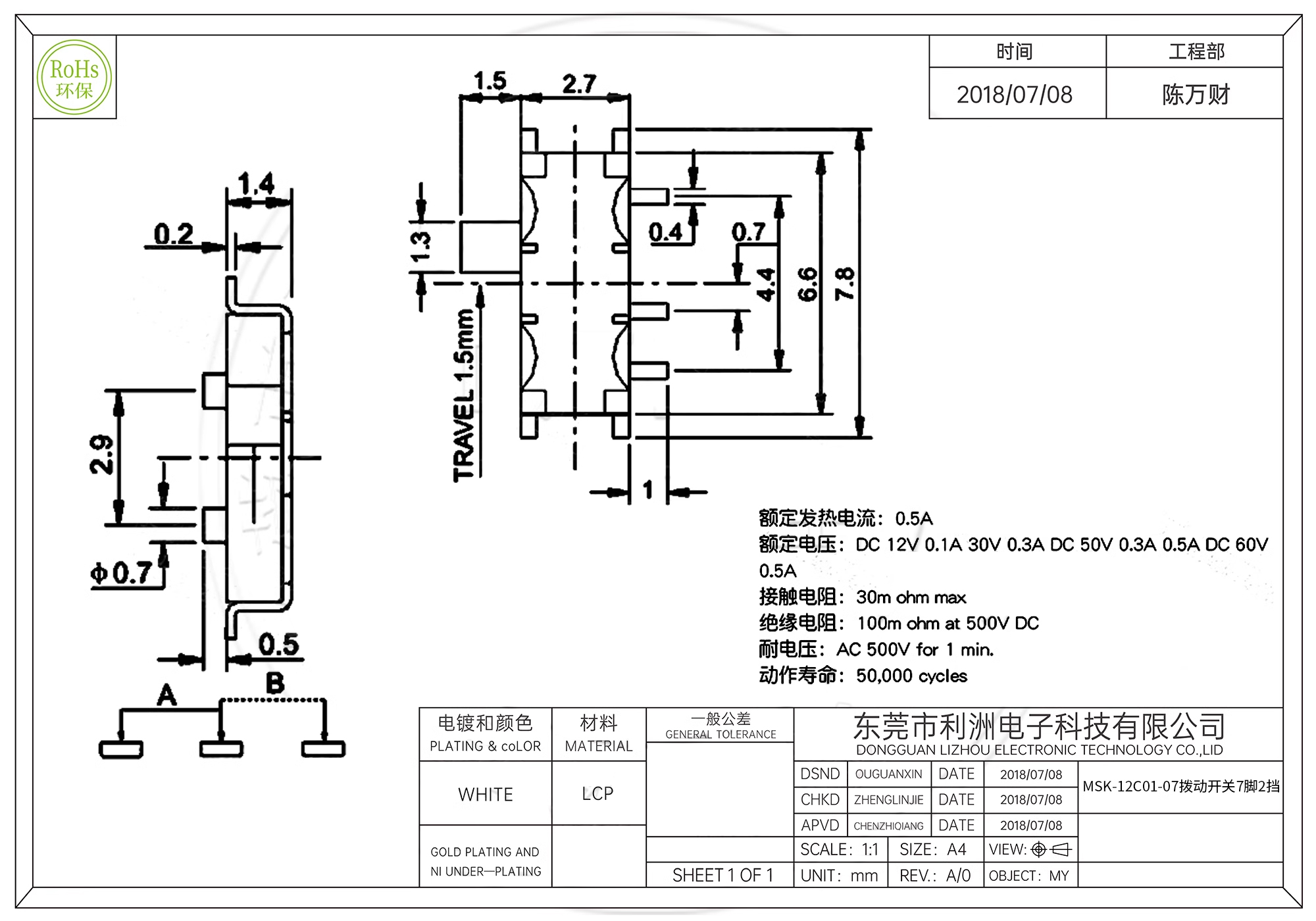 Rated current: 0.5A