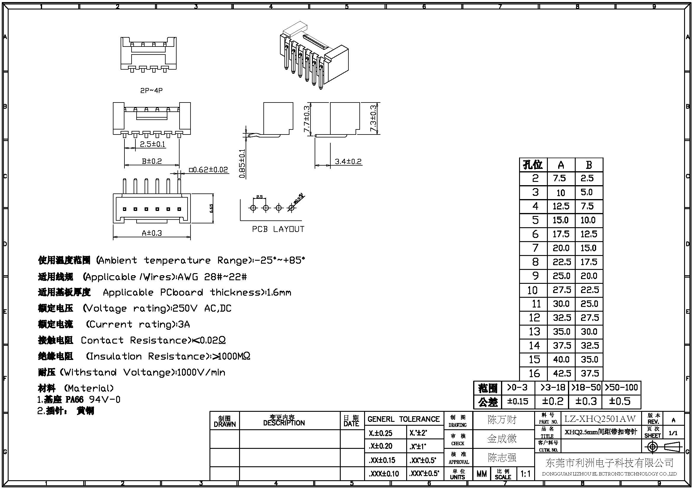 XHQ2.5mm间距系列