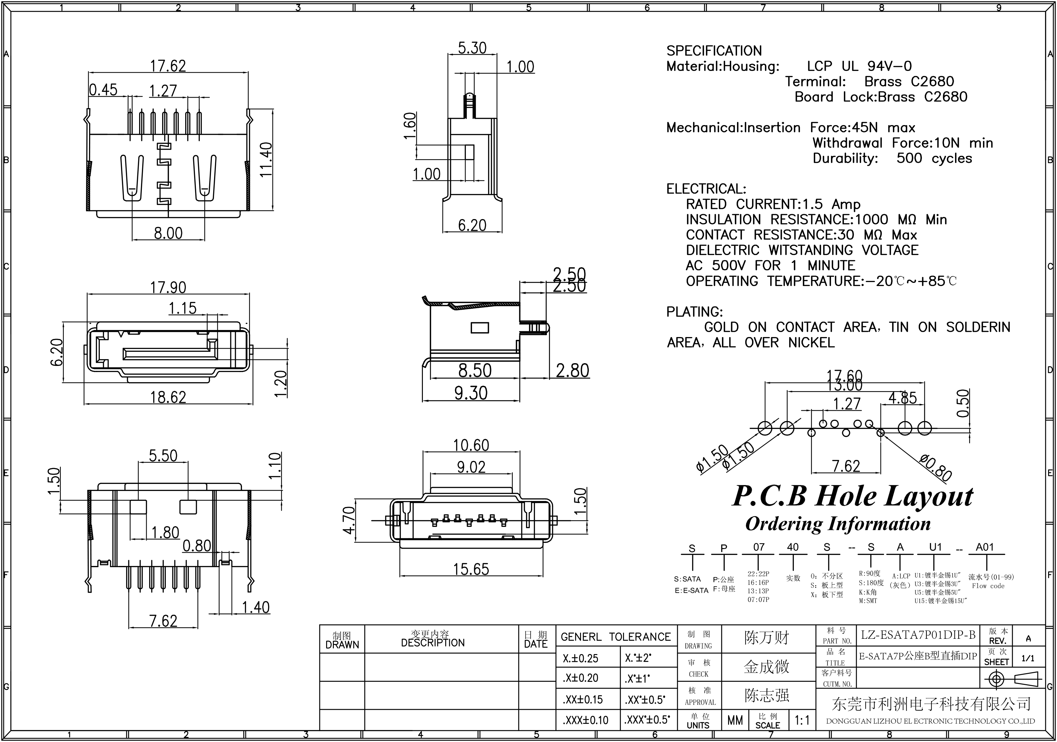 E-SATA7P公座B型直插DIP铁壳