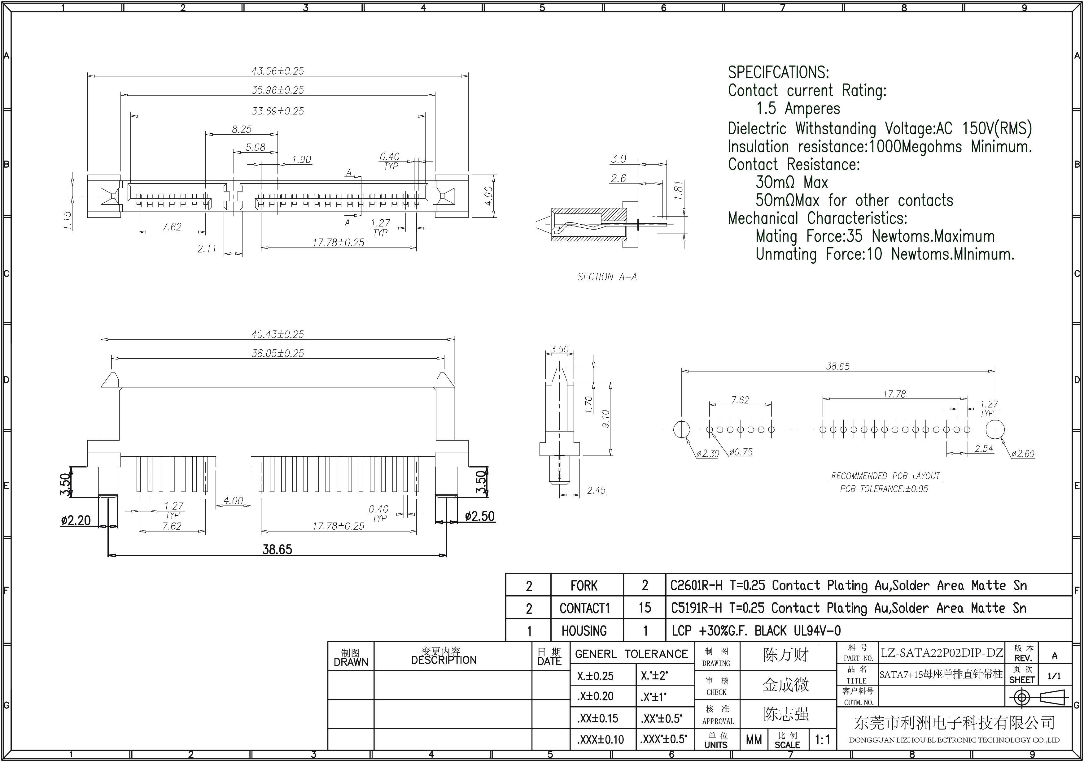 Insulation resistance: 30mΩ Max 50mΩ Max for other contacts
