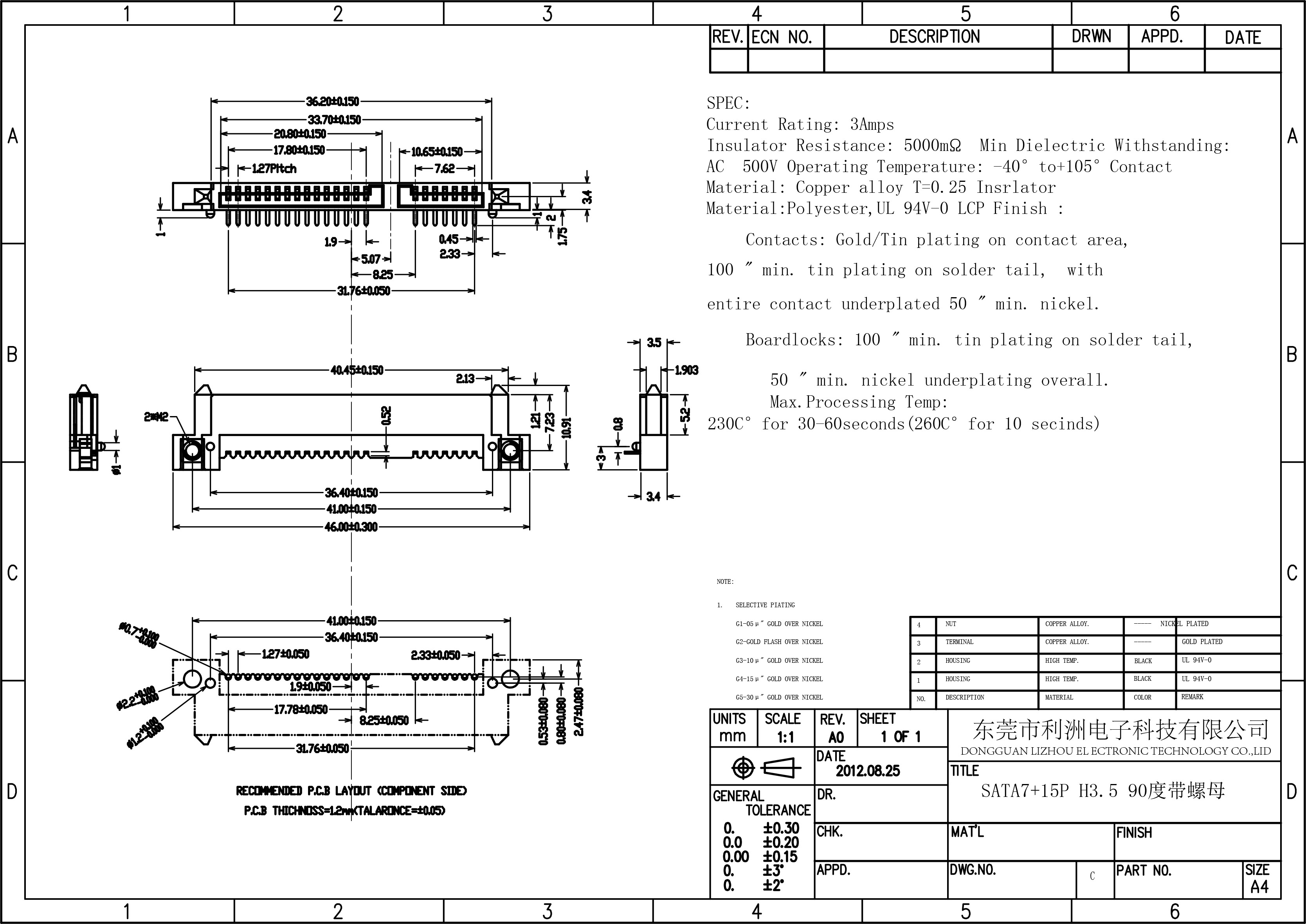 SATA7+15母座弯针带螺丝孔