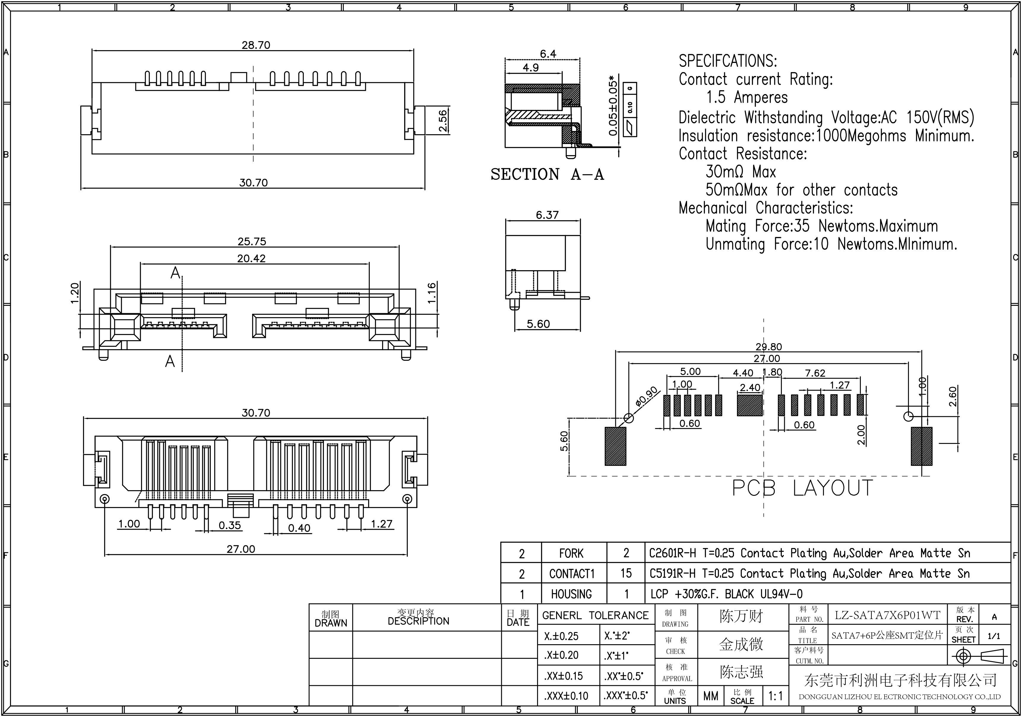 SATA7P+6P公座SMT定位片