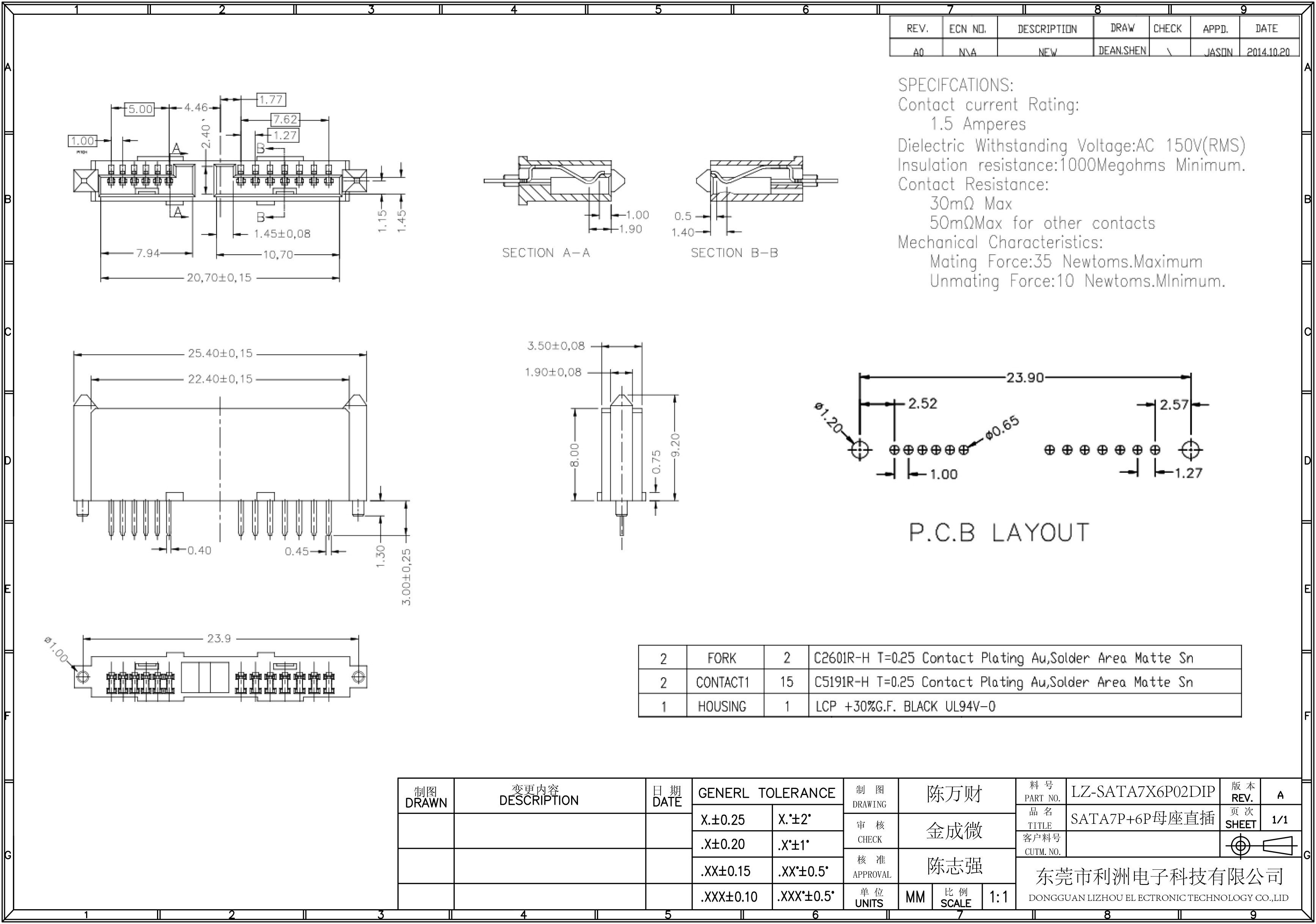 SATA7P+6P母座直插