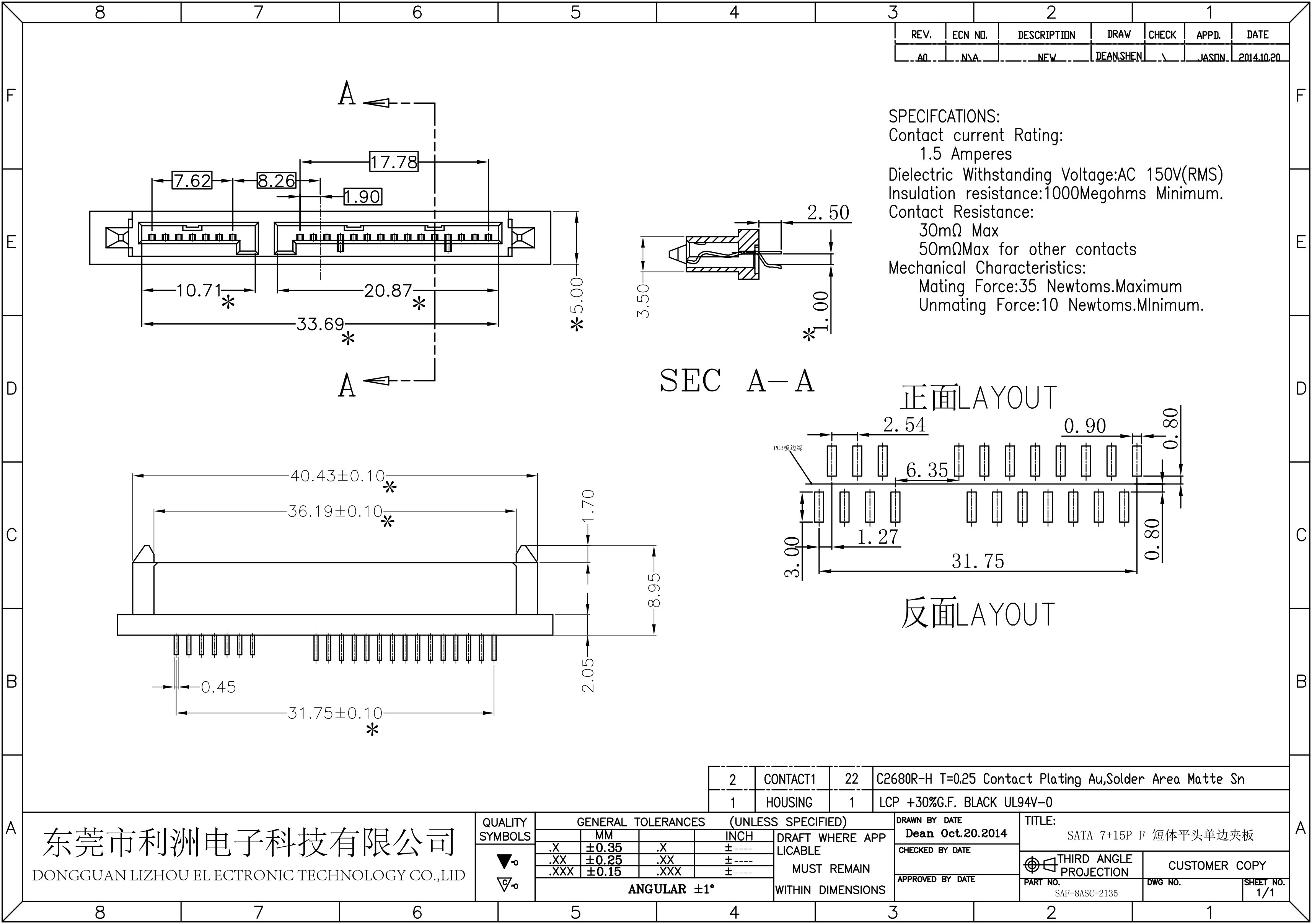Contact resistance: 30mΩ Max 50mΩ Max for other contacts