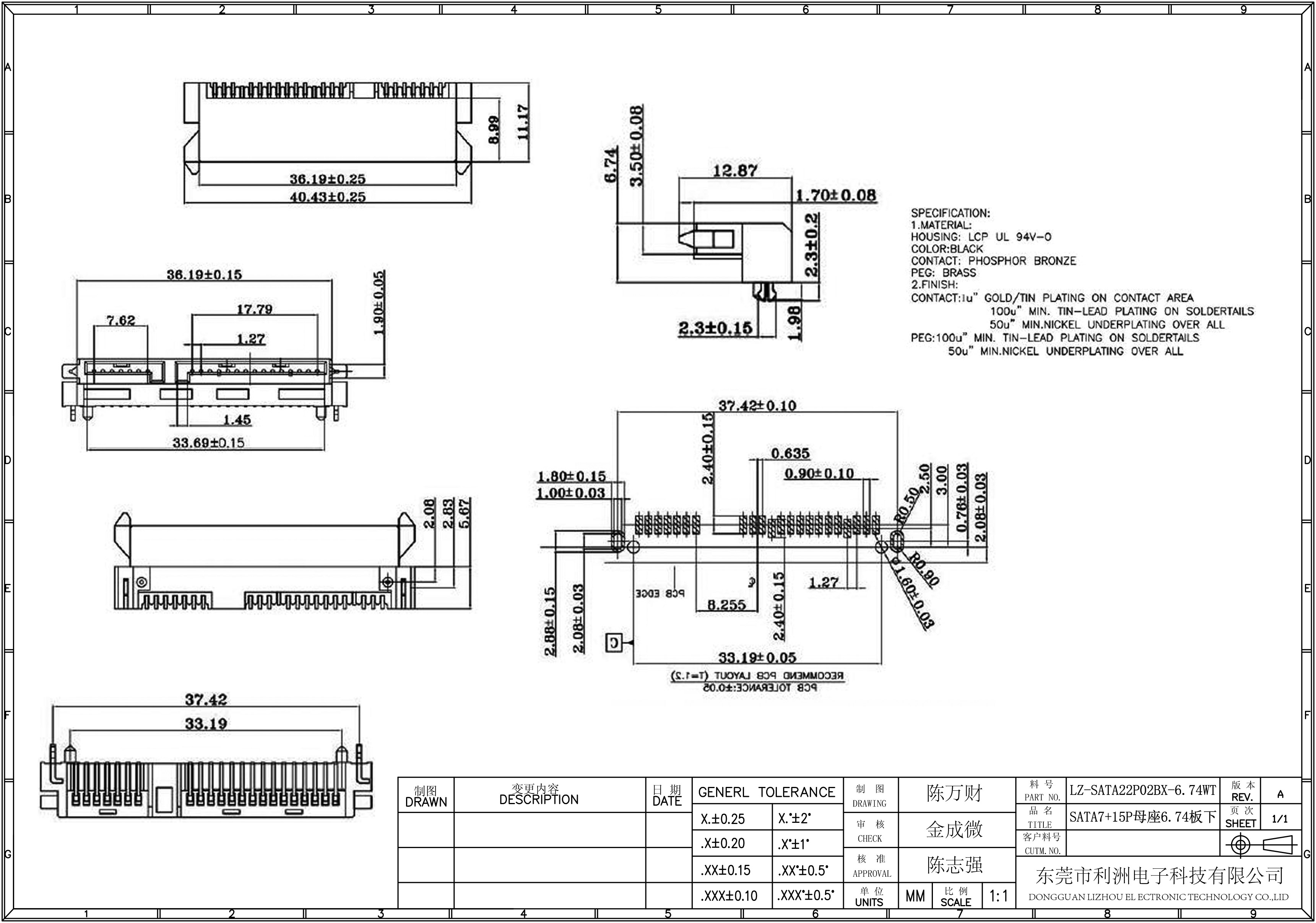 Finish Board Lock: gold/tin plating on contact area 100u" min tin-lead plating on soldertails 50u" min nickel underplating over all