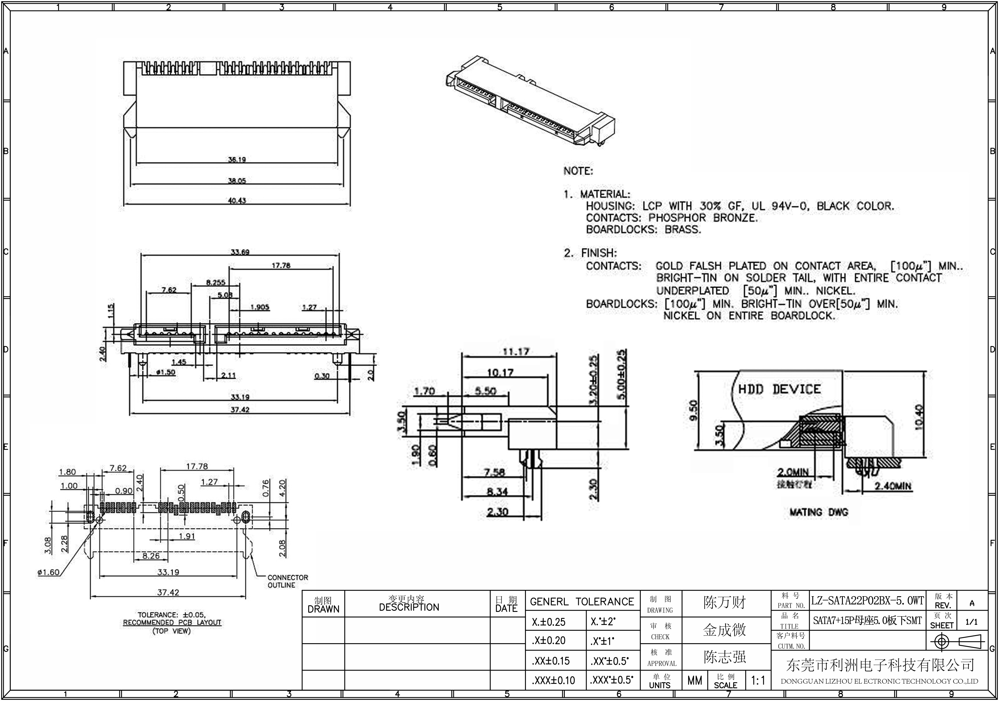 Finish Contacts: Gold Falsh Plated on contact area [100u"] min bright-tin on solder tail with entire contact underplated [50u"] min nickel