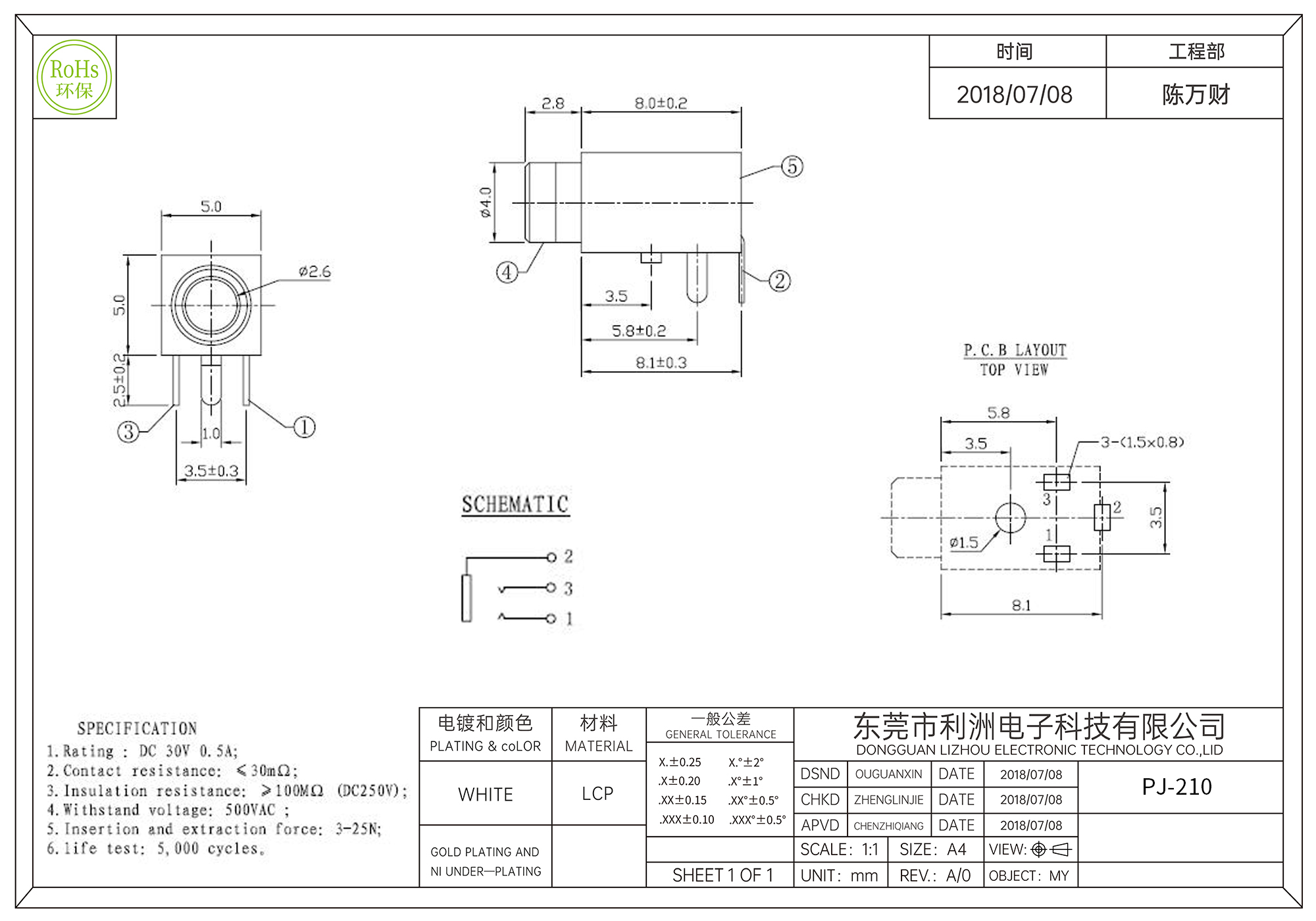 PJ-210耳机插座2.5mm三脚插件