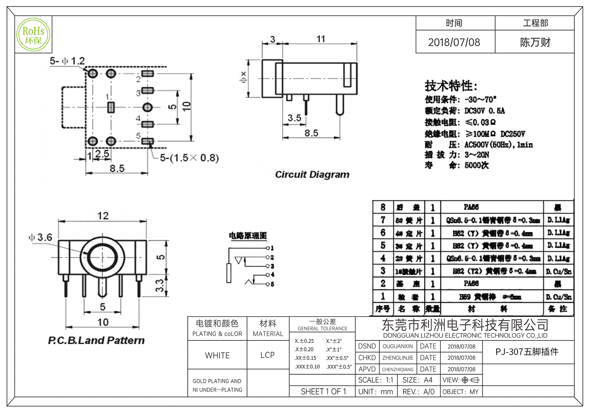 • PJ-307耳机插座3.5mm五脚插件