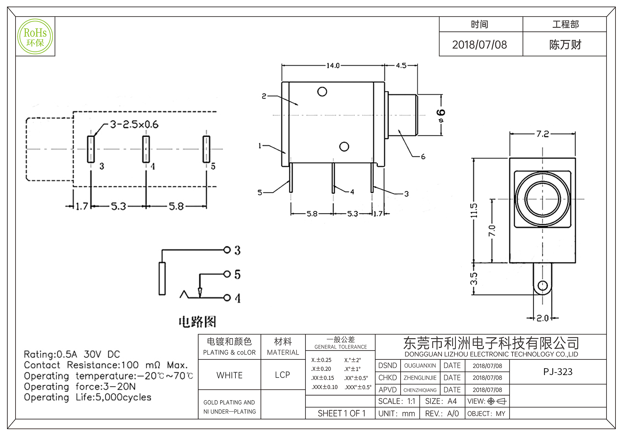 PJ-323耳机插座3.5mm三脚插件透明盖