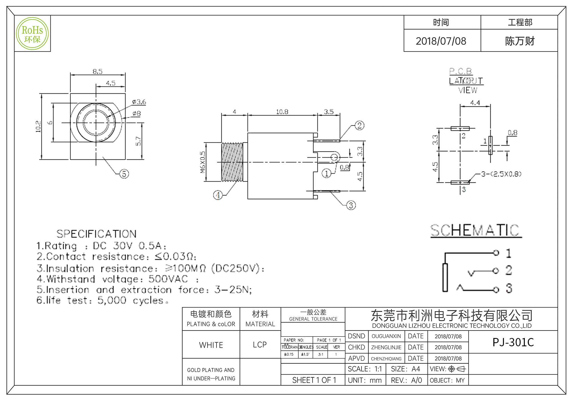 PJ-301C耳机插座3.5mm带螺纹直插