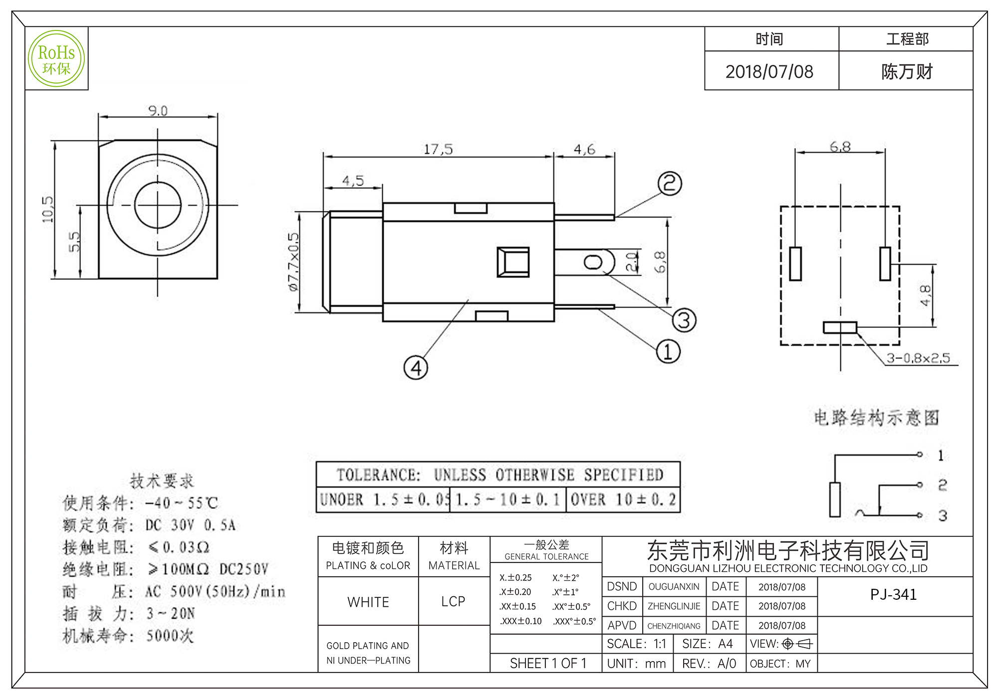 Insulation Resistance:  ≥100MΩ(DC250V)