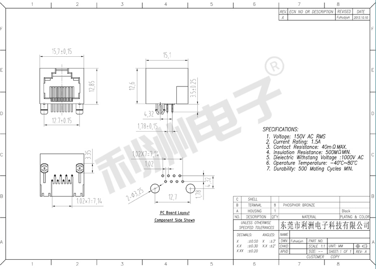 Durrability: 500 Mating Cycles MIN