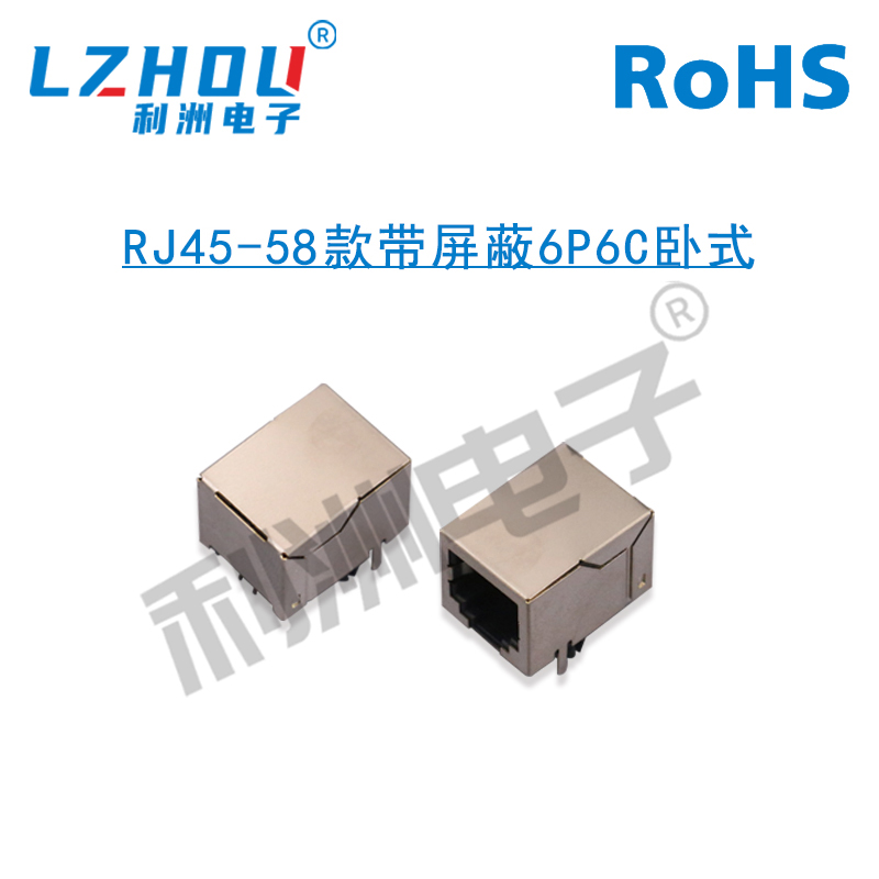 RJ45网络插座58款6P6C带屏蔽前二脚90度卧式插件网络插座接口插座