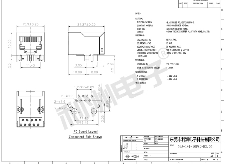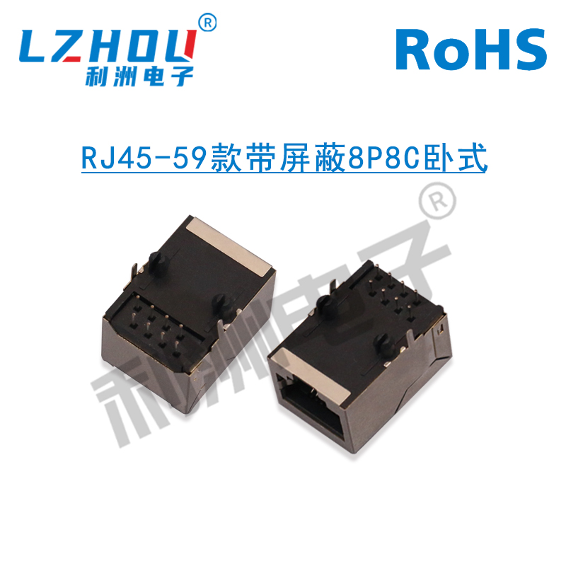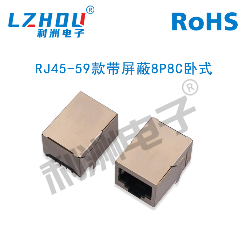 RJ45网络插座59款8P8C带屏蔽无灯21长卧式弯针RJ45网口母座连接器