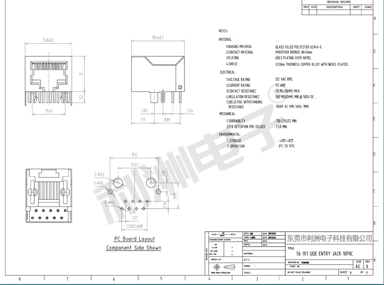 Durrability: 750 Mating Cycles MIN