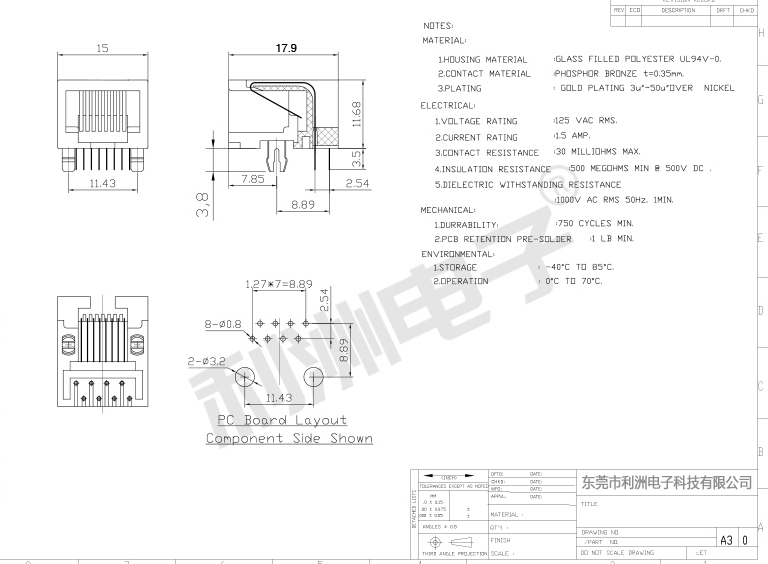 RJ45网络插座母座RJ网口插座58款8P8C全塑有缺口以太网接口连接器
