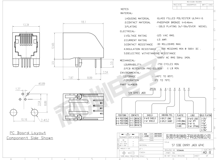 Durrability : 750 Mating Cycles MIN