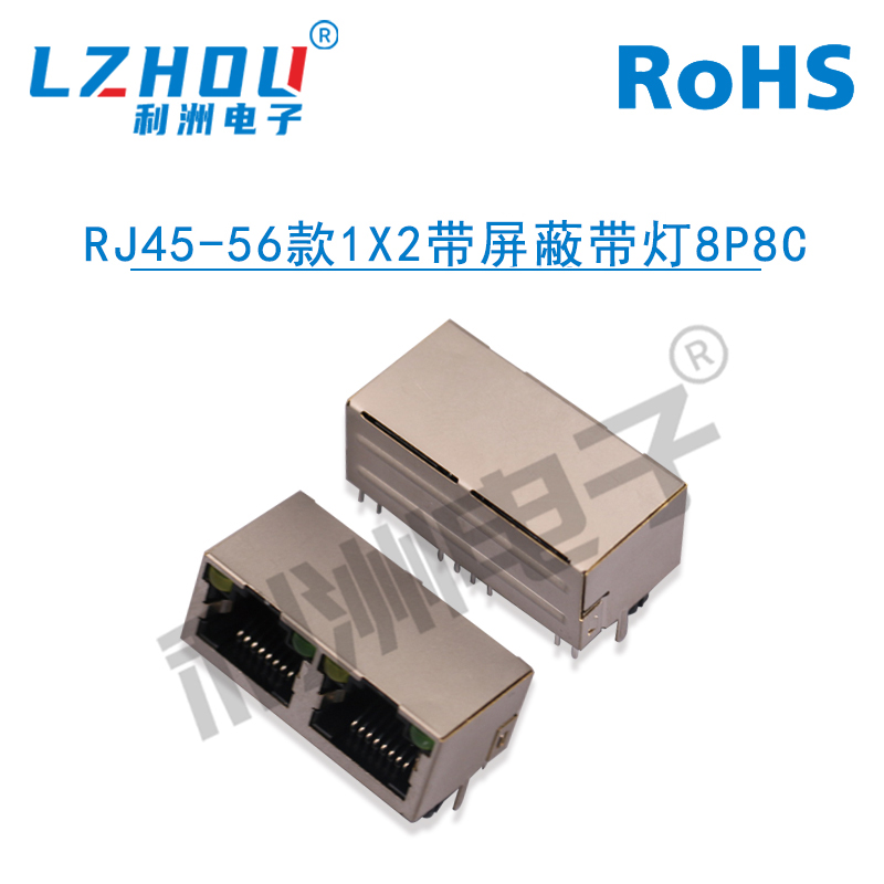 RJ45-56款1X2带屏蔽带灯8P8C