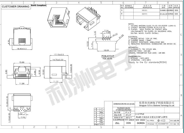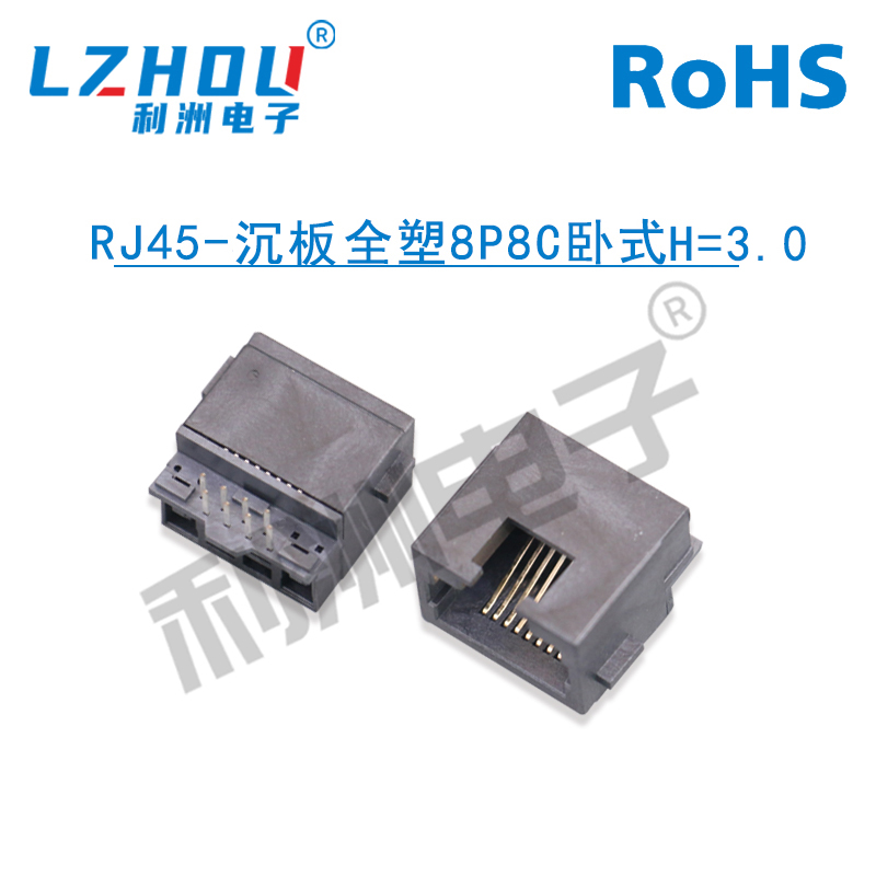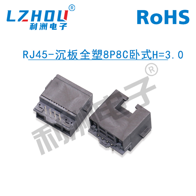 RJ45-沉板全塑8P8C卧式H=3.0
