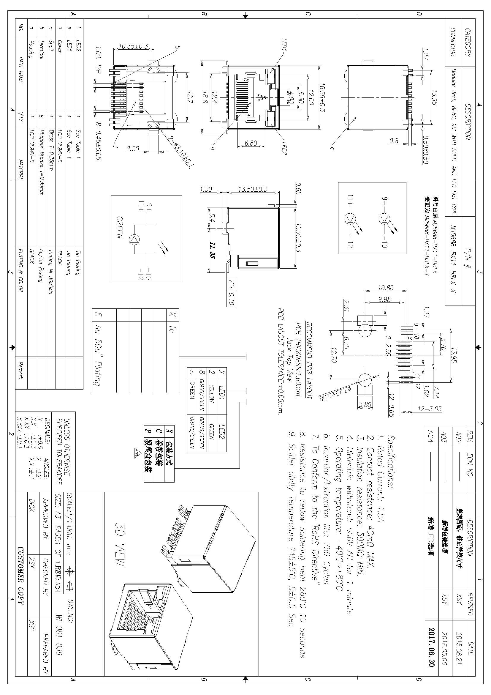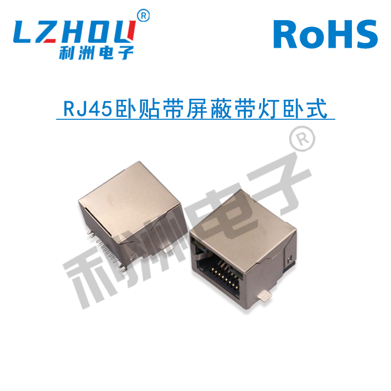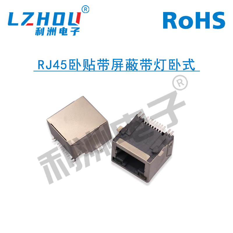 RJ45卧贴带屏蔽带灯卧式