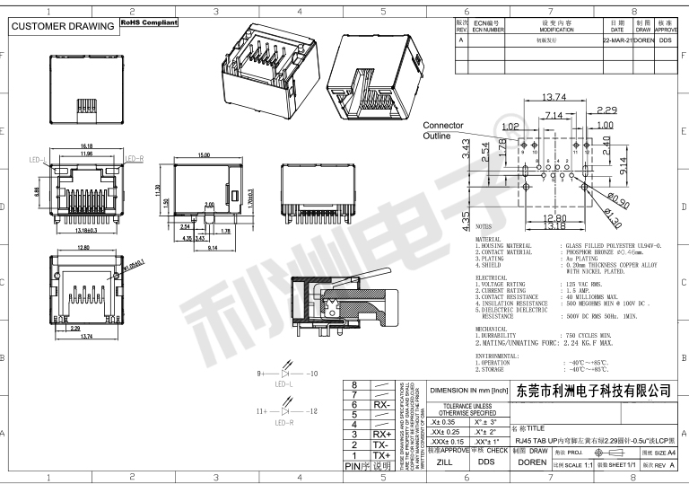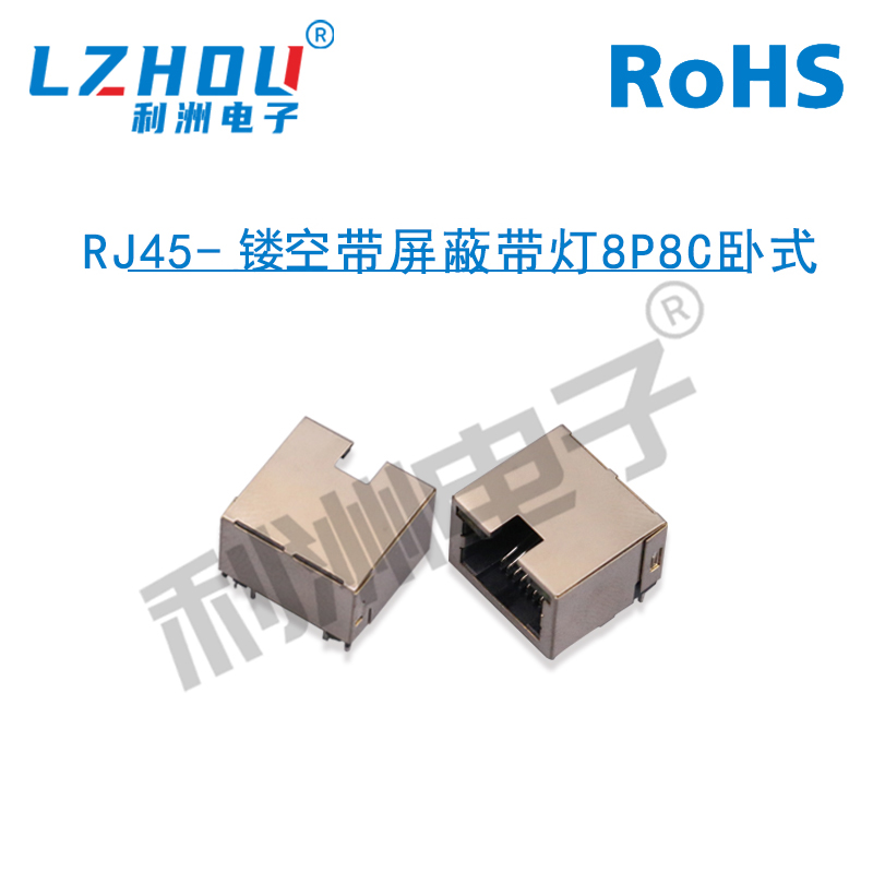 RJ45-带屏蔽带灯8P8C镂空卧式