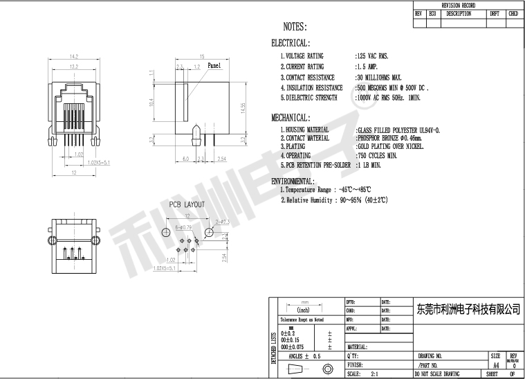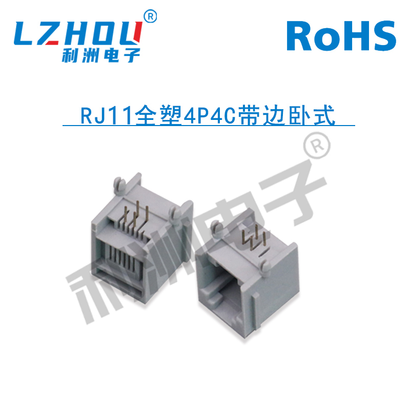 • RJ11全塑4P4C带边卧式