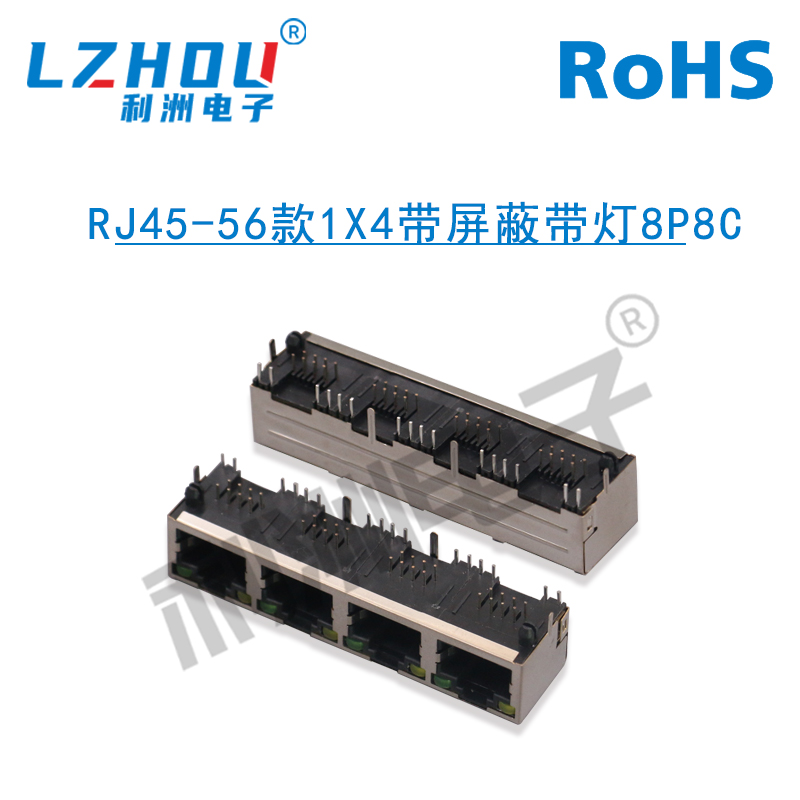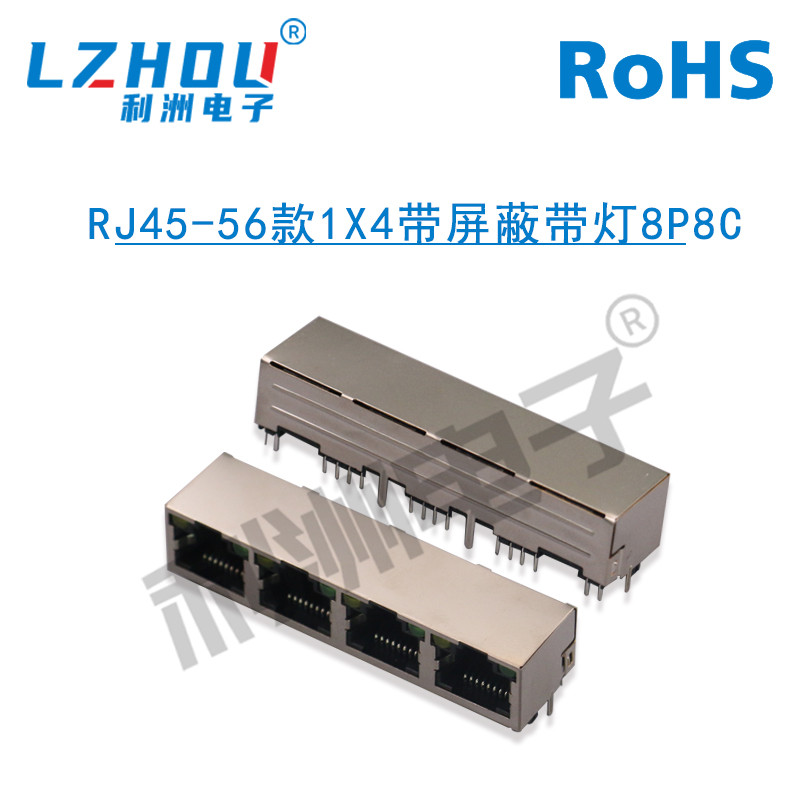 RJ45-56款1X4带屏蔽带灯8P8C