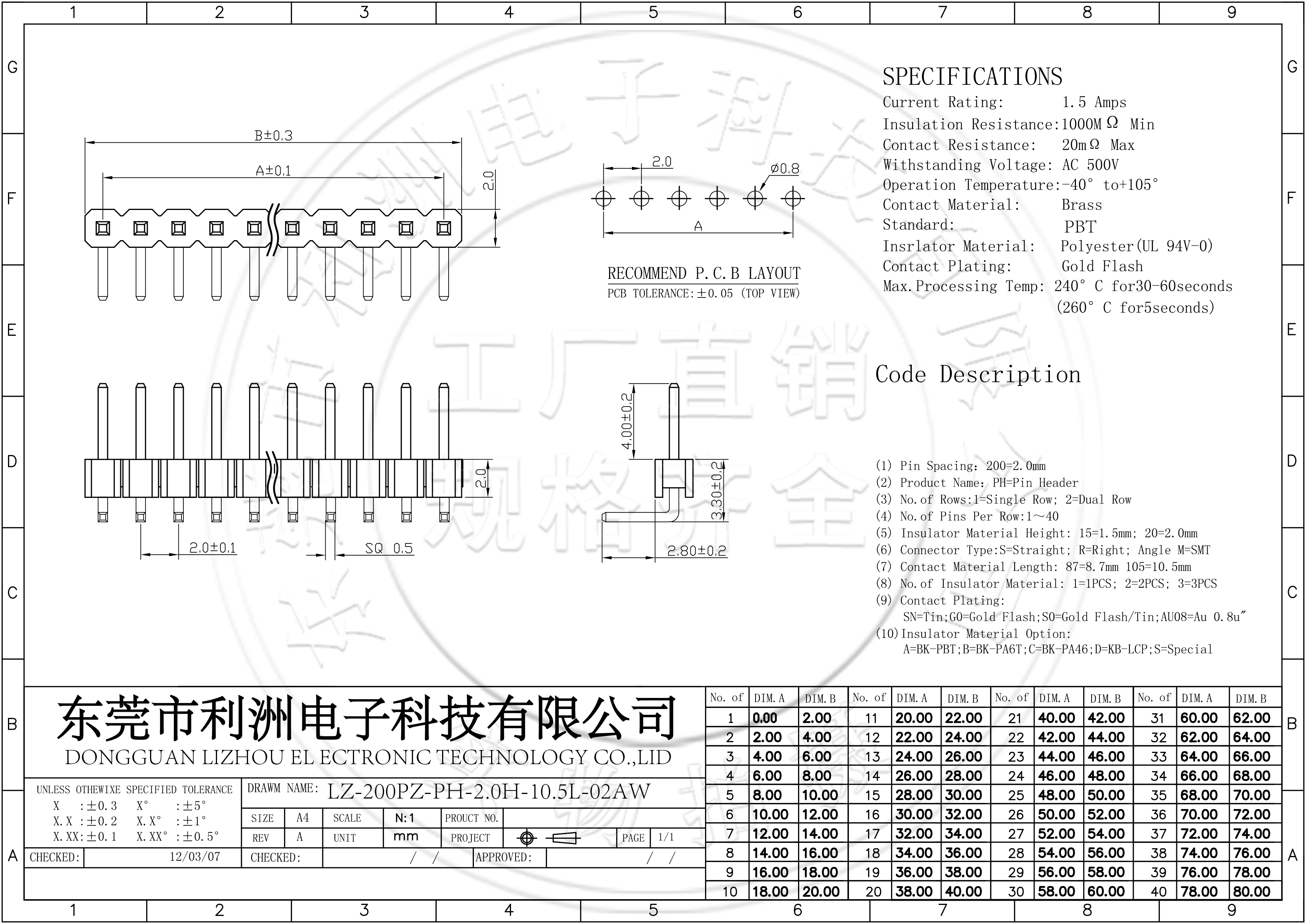 • 排针2.0mm间距单排弯针