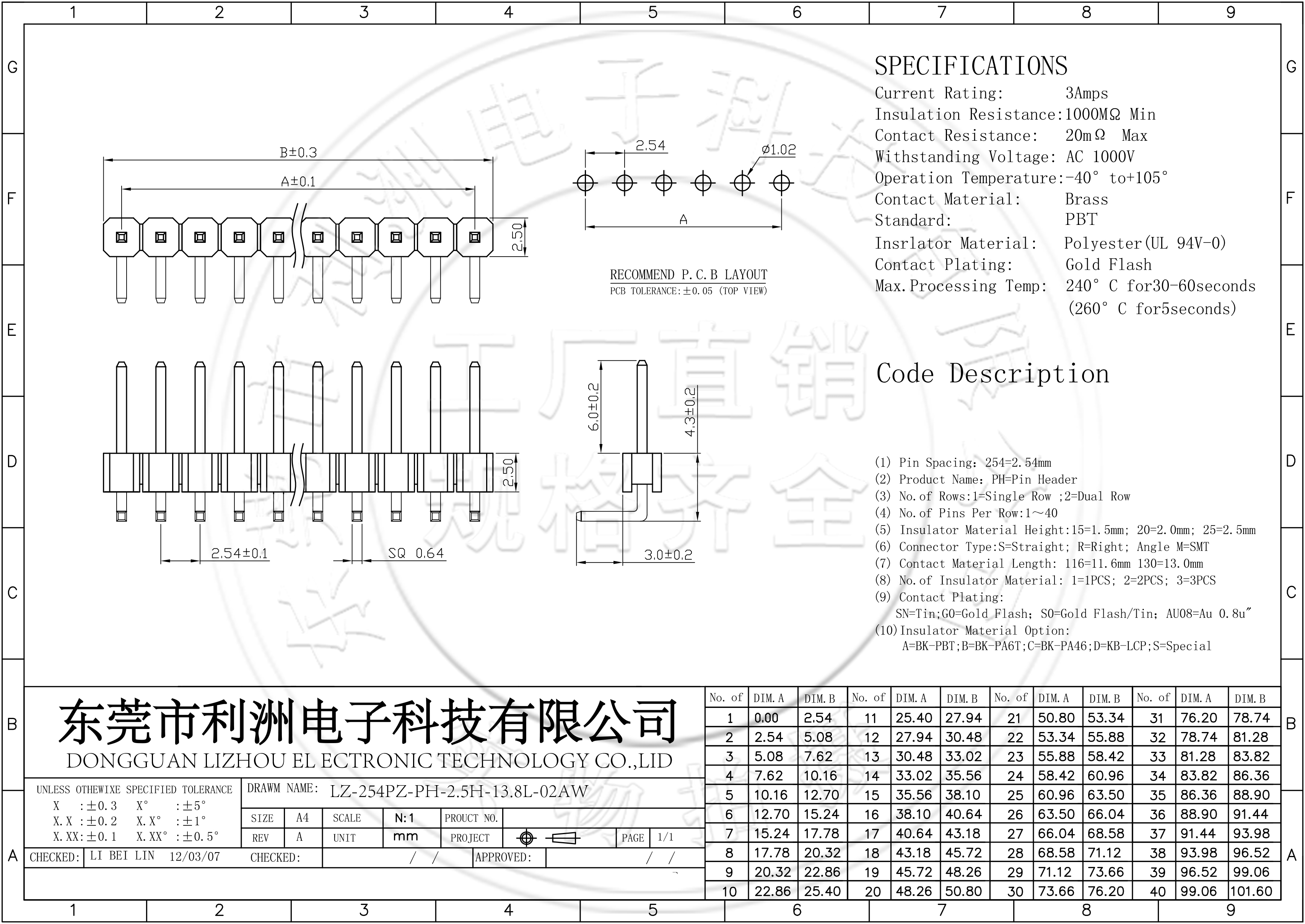 • 排针2.54mm间距单排弯针
