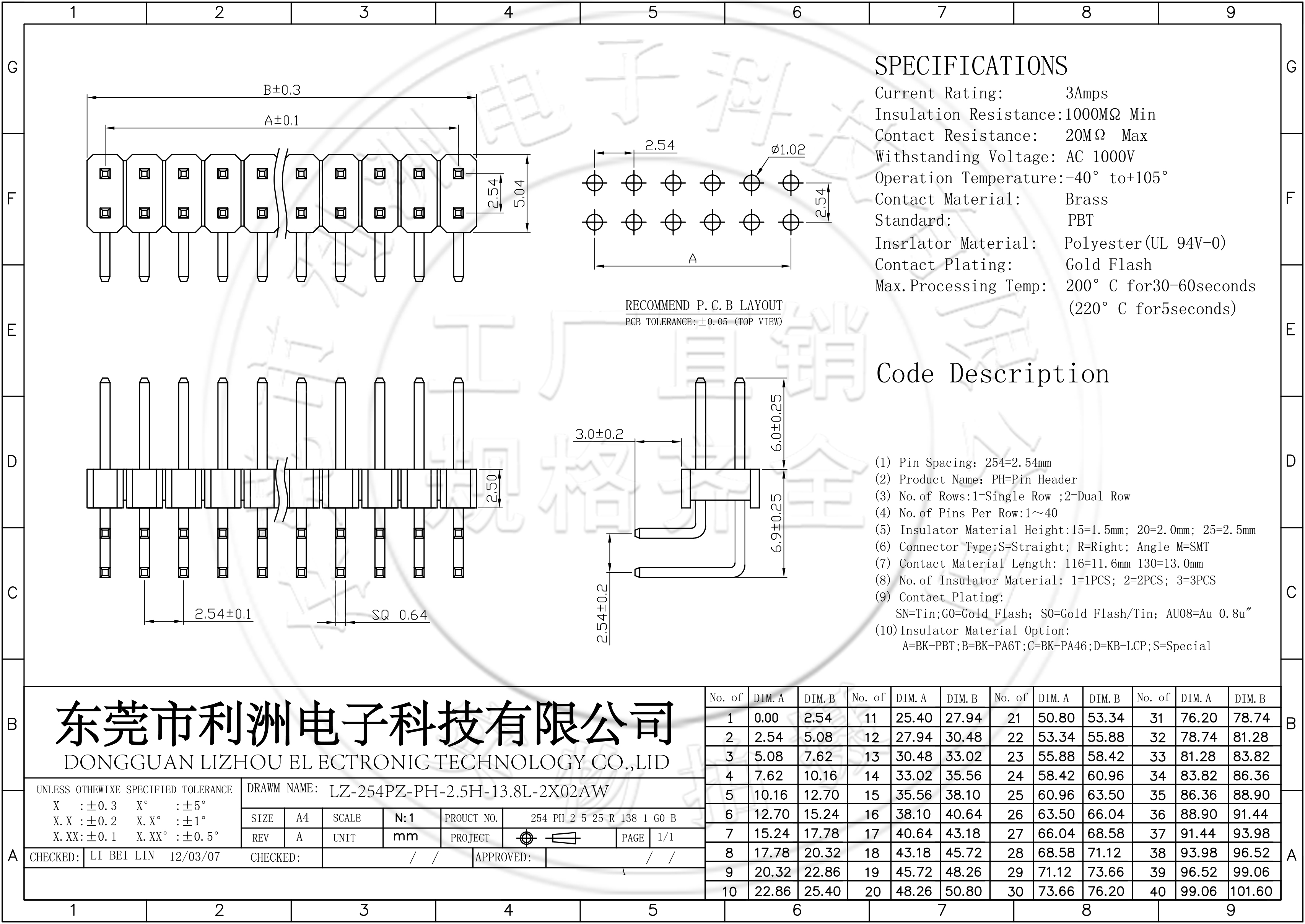 排针2.54mm间距双排弯针
