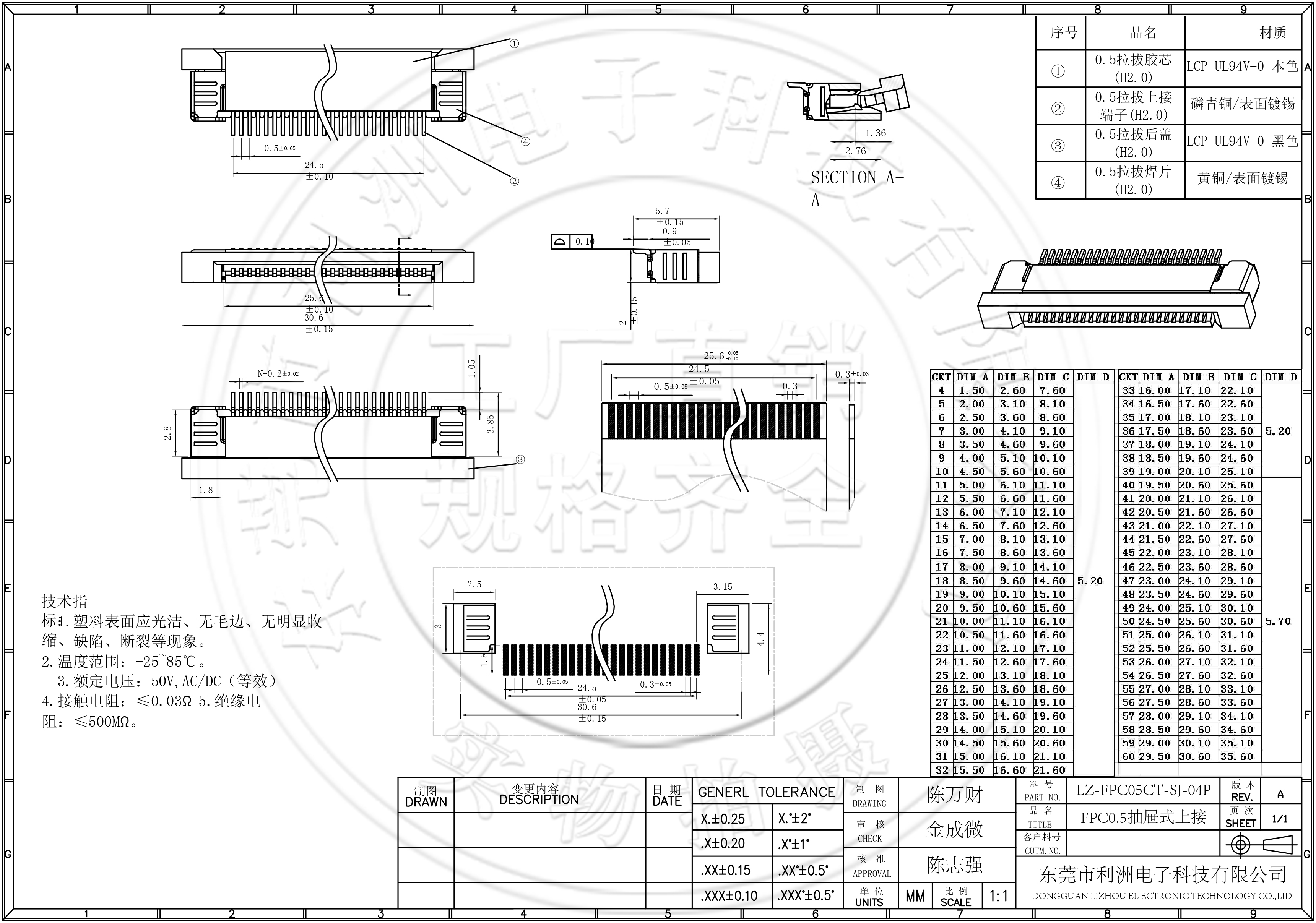 FPC0.5mm间距抽屉式上接 下接SMT