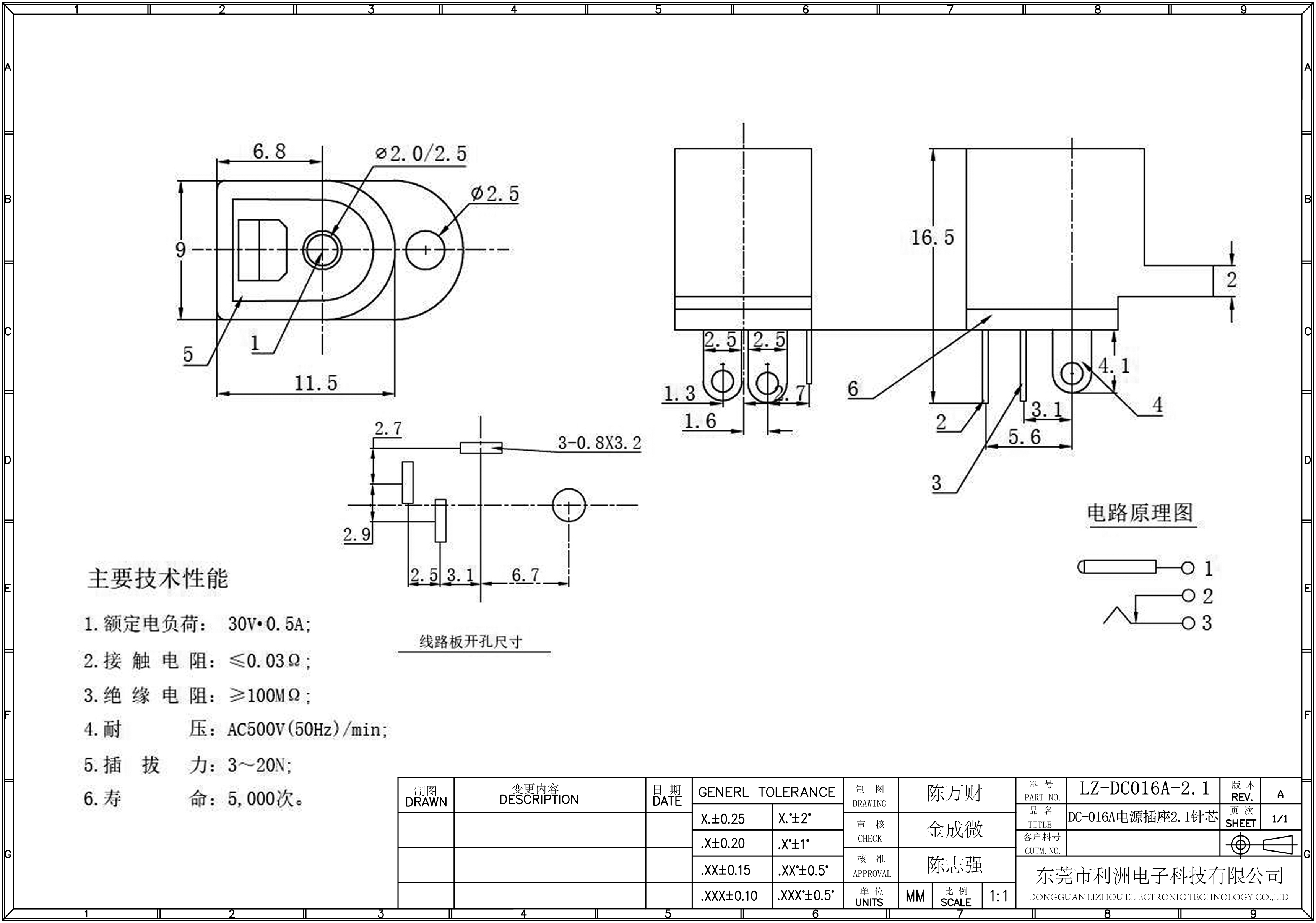 DC-016A电源插座5.5 2.1 2.5针芯