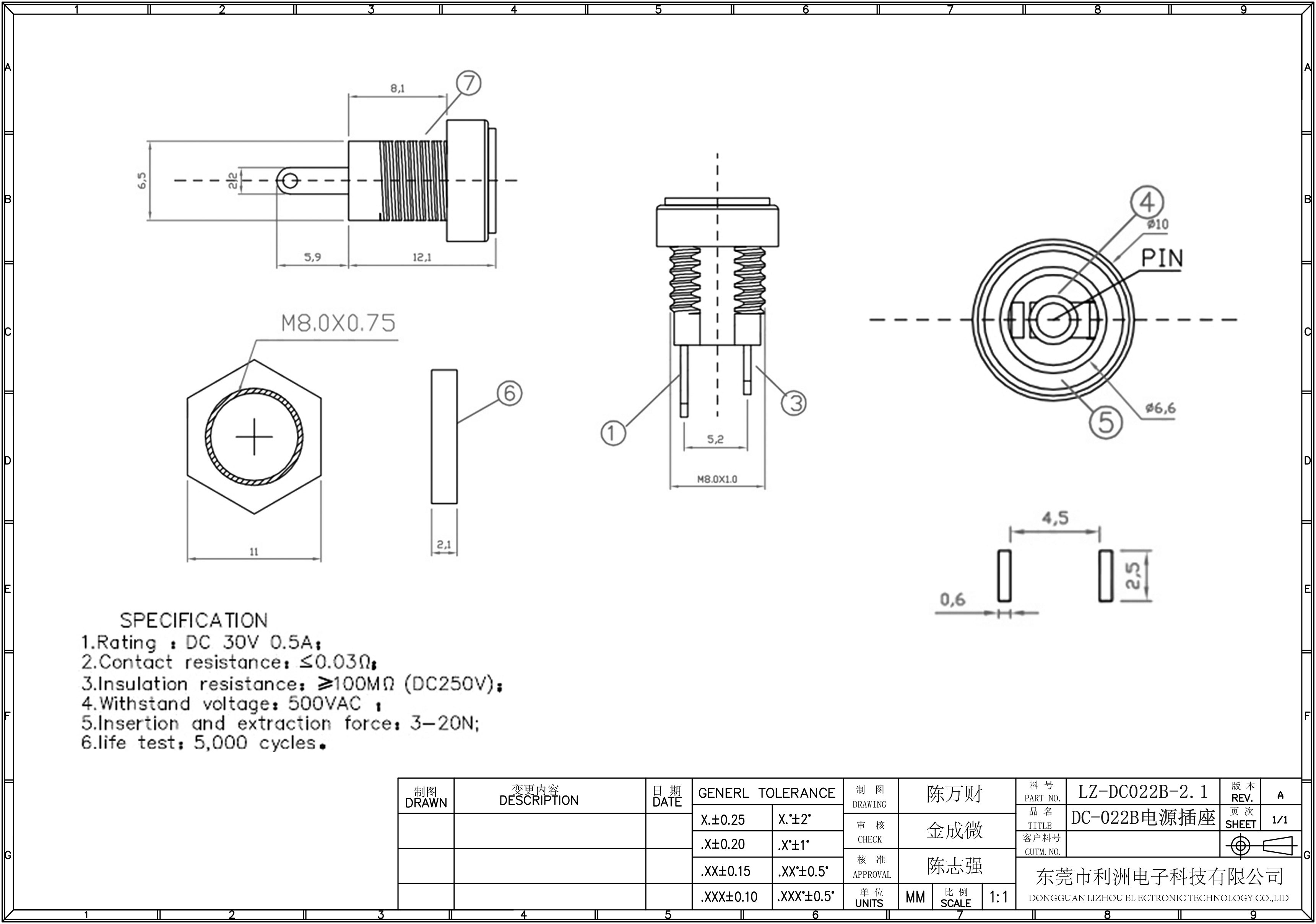 DC-022B电源插座5.5 2.0 2.5针芯
