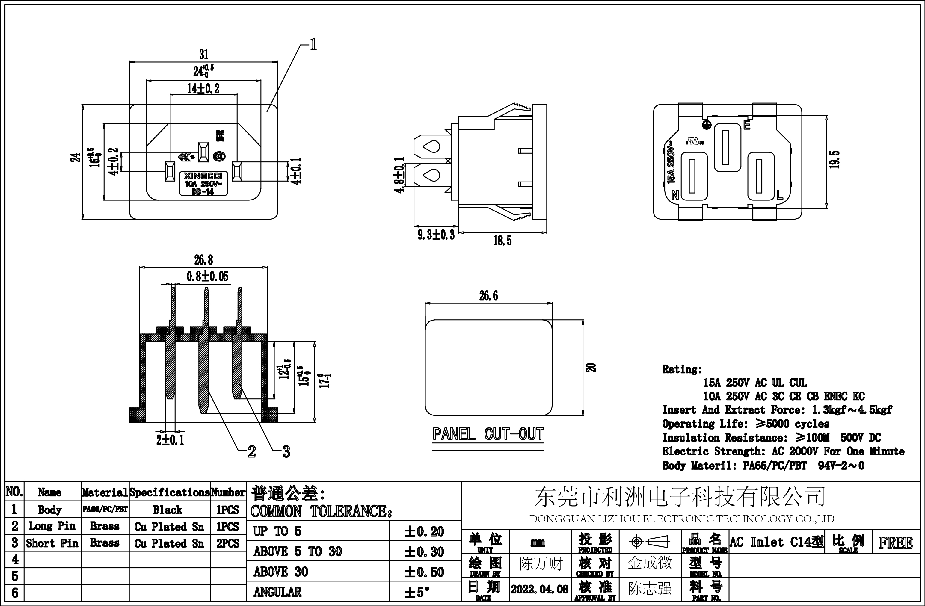Rating: 15A 250V AC UL CUL 10A 250V AC 3C CE CB ENEC KC