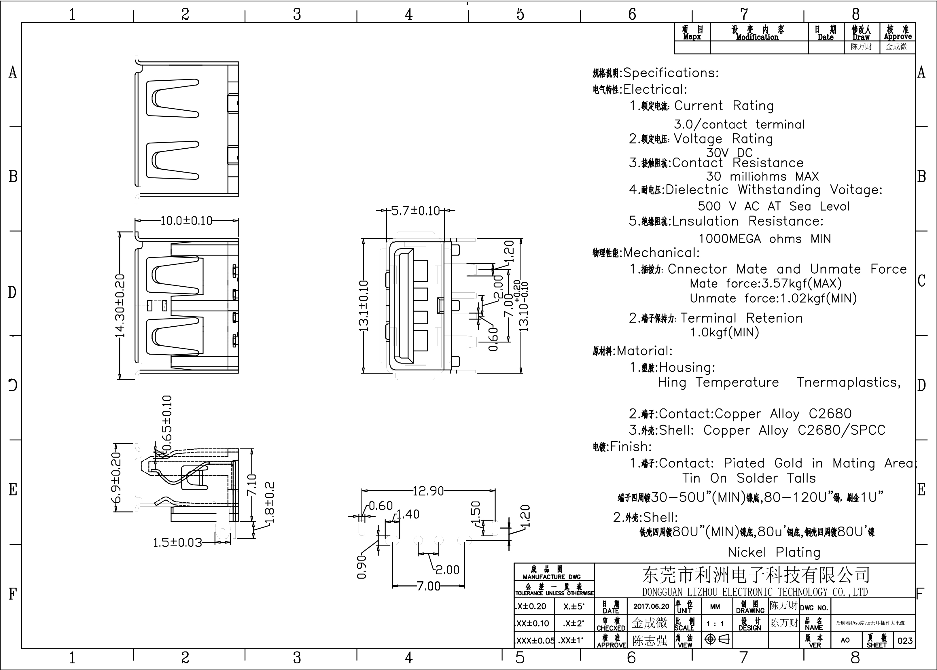 Cnnector Mate and Unmate Force: Mate force:3.57kgf(MAX) Uumate force:1.02kgf(MIN)