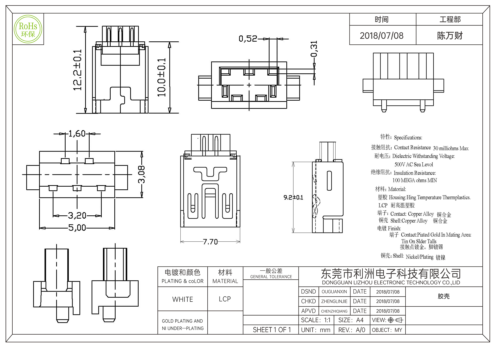 Contact Resistance: 30 milliohms Max