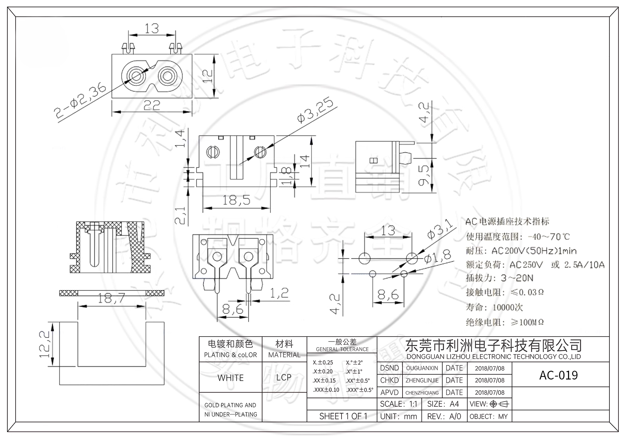 Insertion and unplugging force: 3~20N