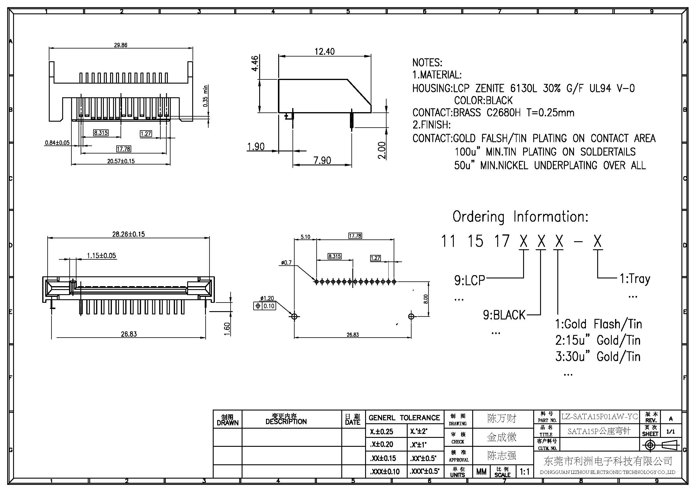 SATA15P公座 90°弯针带定位片