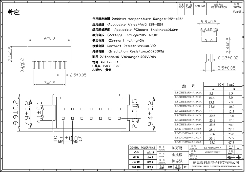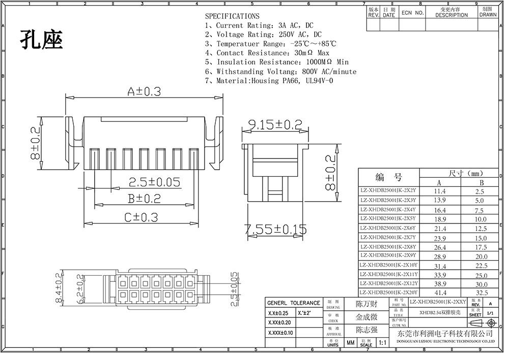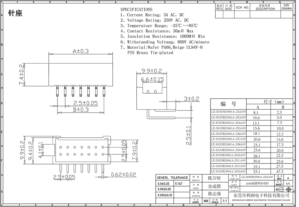 XHDB2.5mm间距双排带扣系列