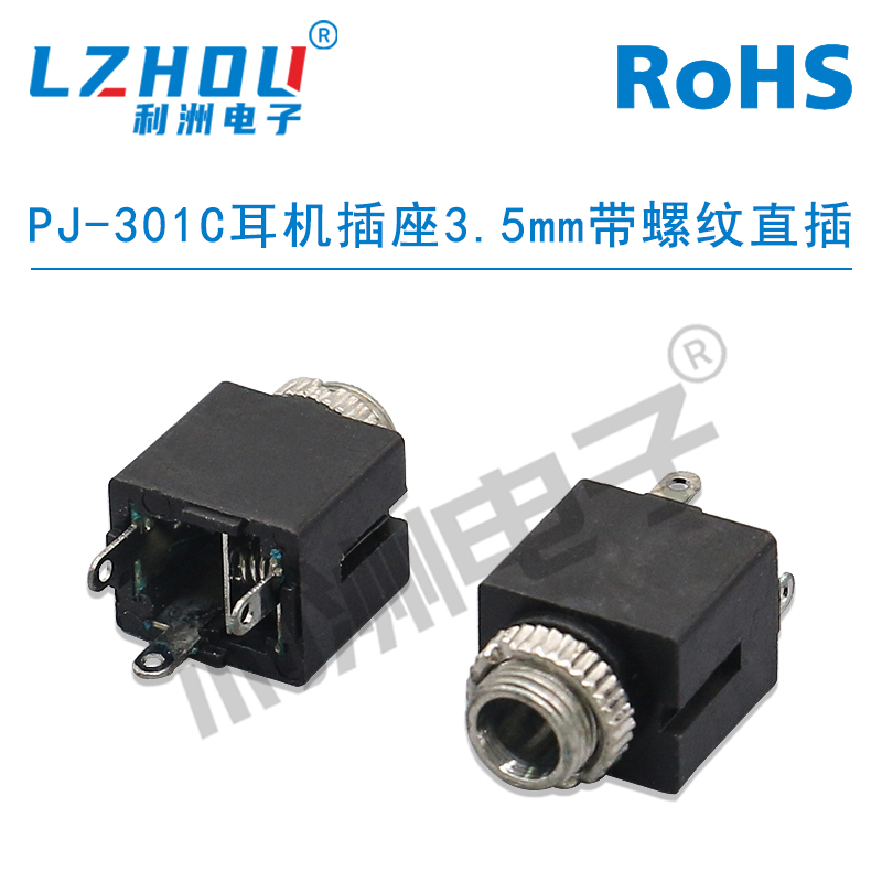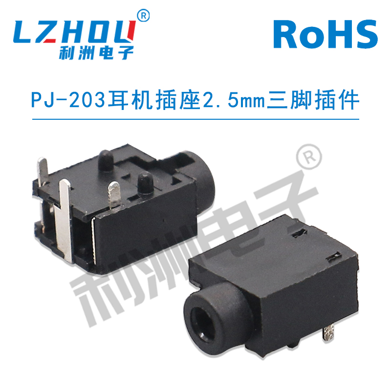PJ-201M耳机插座2.5mm带螺纹三脚插件