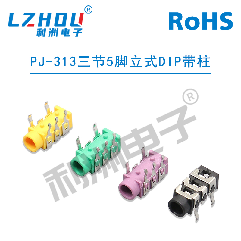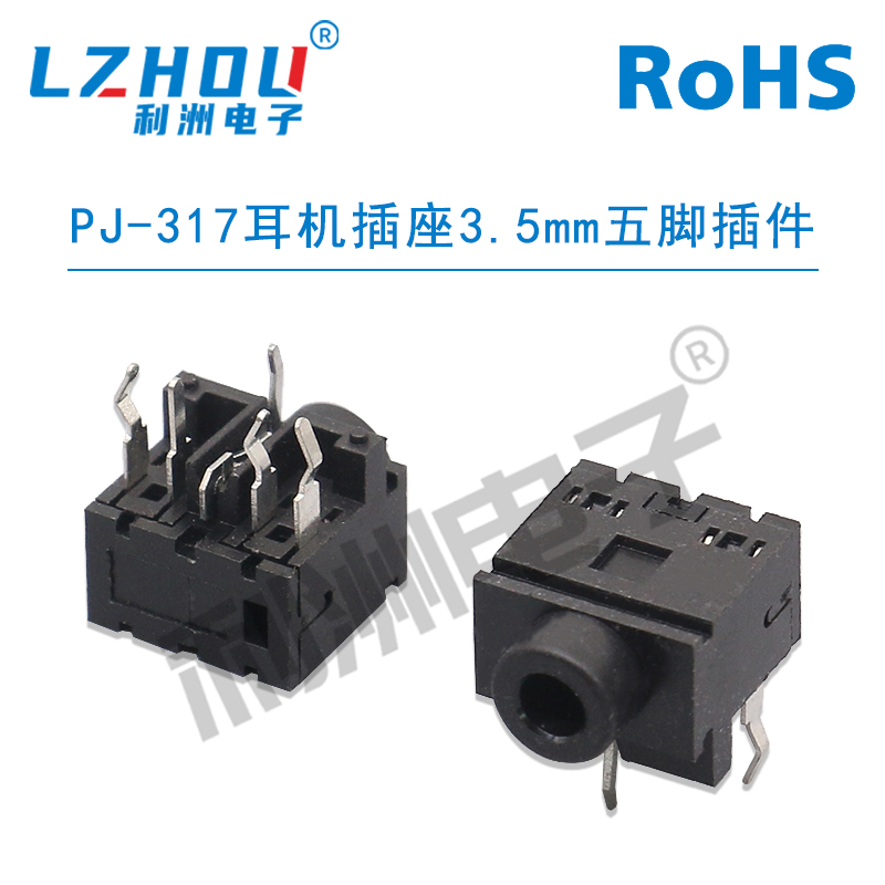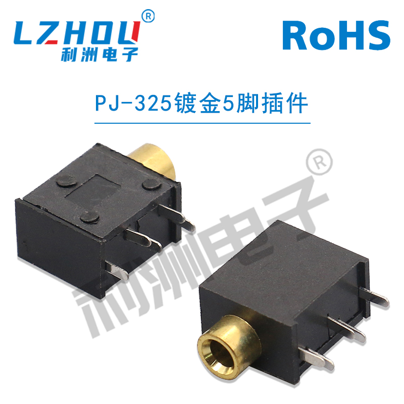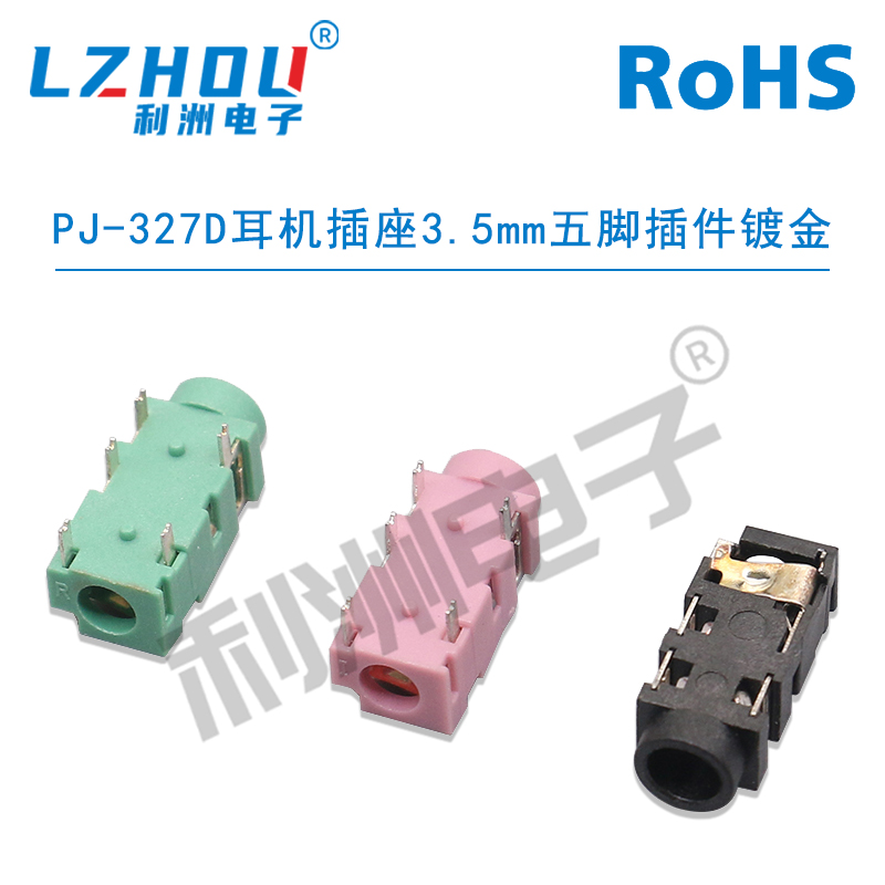PJ-327D耳机插座3.5mm五脚插件镀金