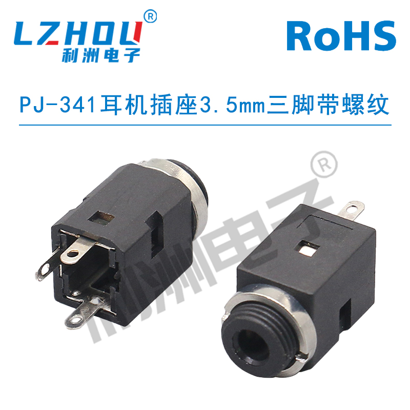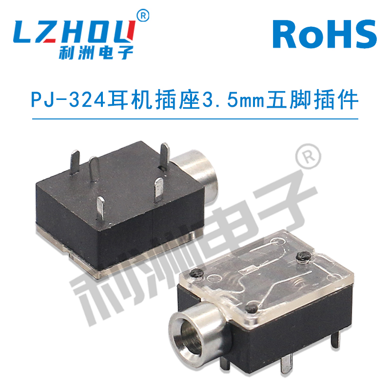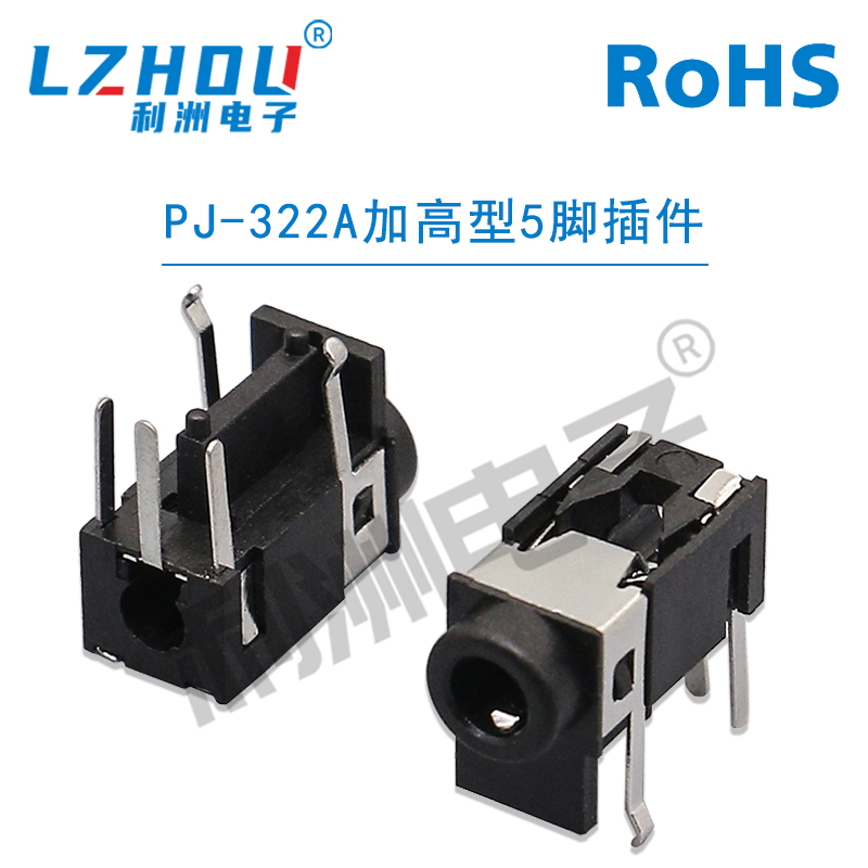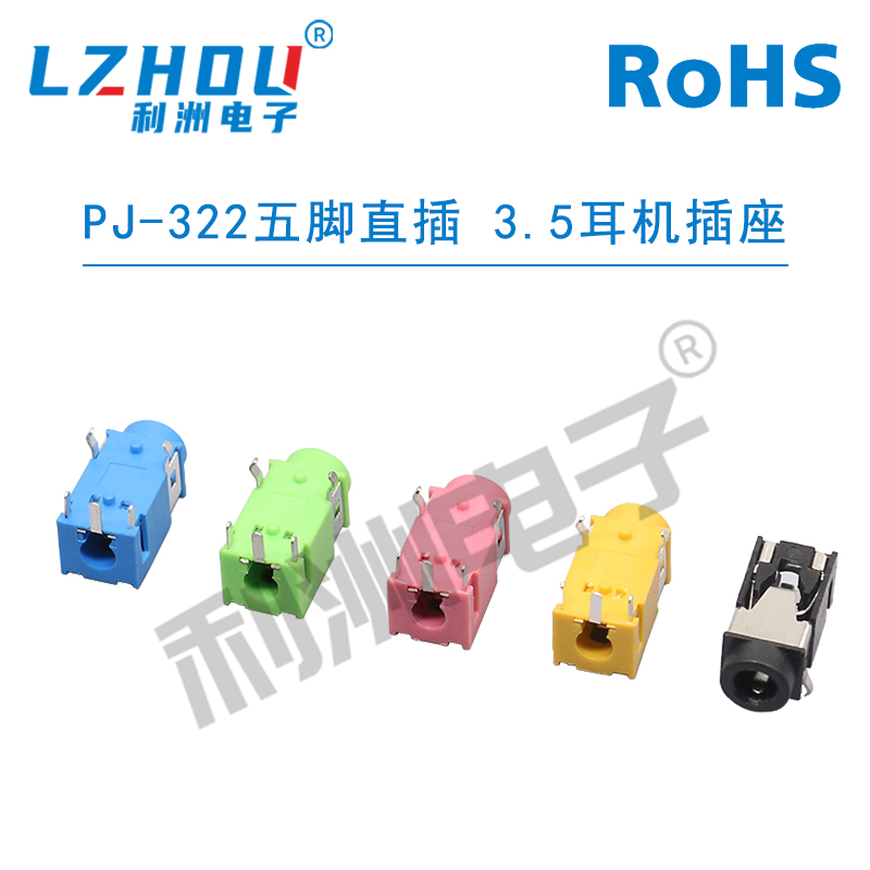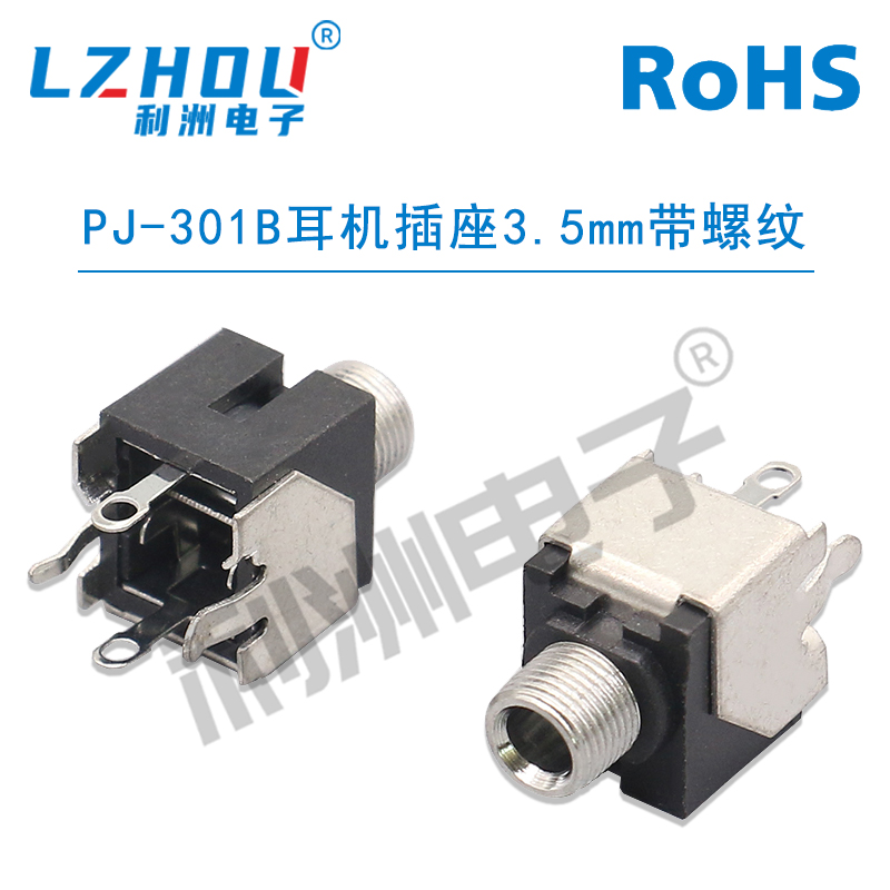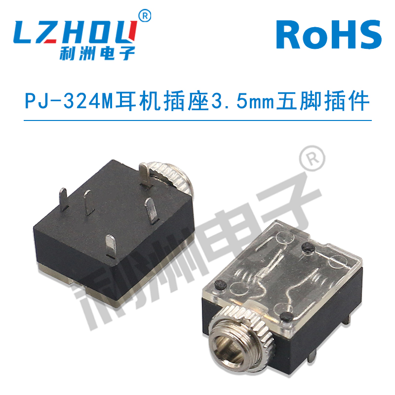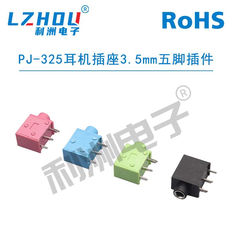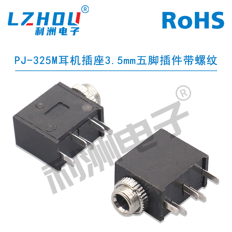 PJ-325M耳机插座3.5mm五脚插件带螺纹