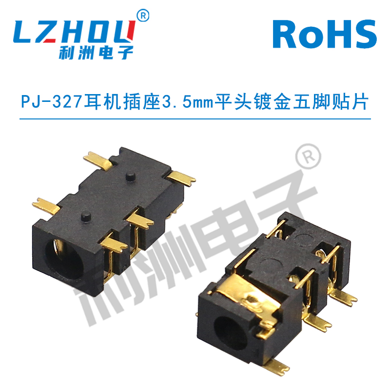 PJ-327耳机插座3.5mm平头镀金五脚贴片