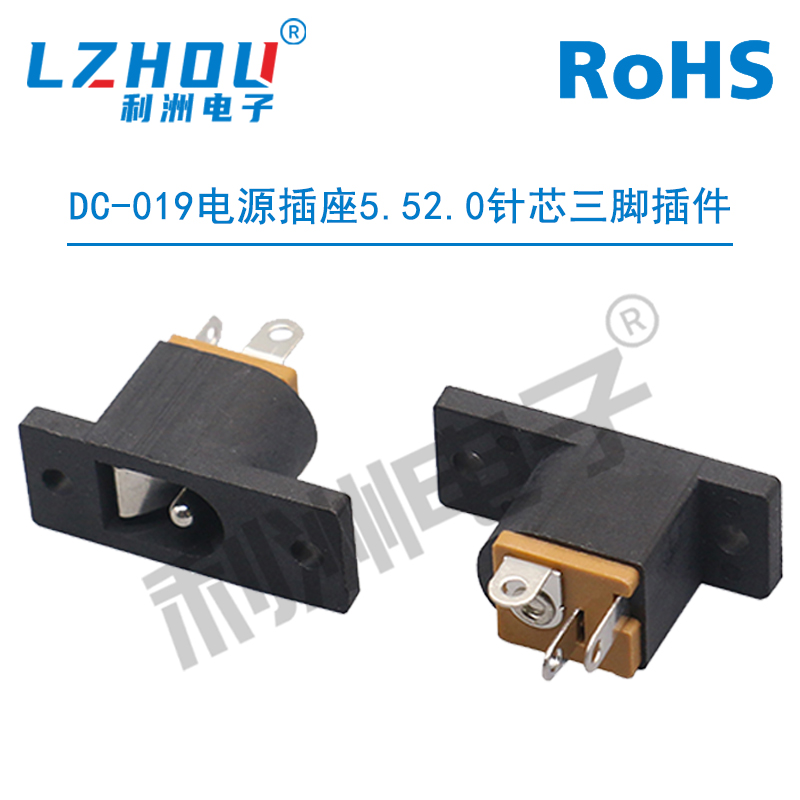 DC-019电源插座5.52.0针芯三脚插件